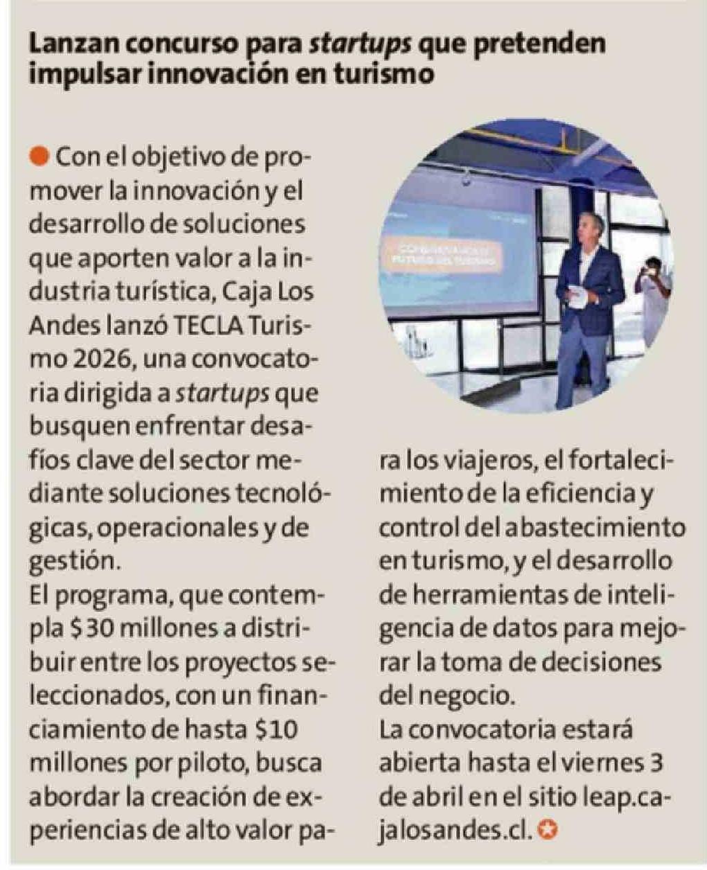 Lanzan concurso para startups que pretenden impulsar innovación en turismo 30-03-2026 La Estrella de Chiloé |