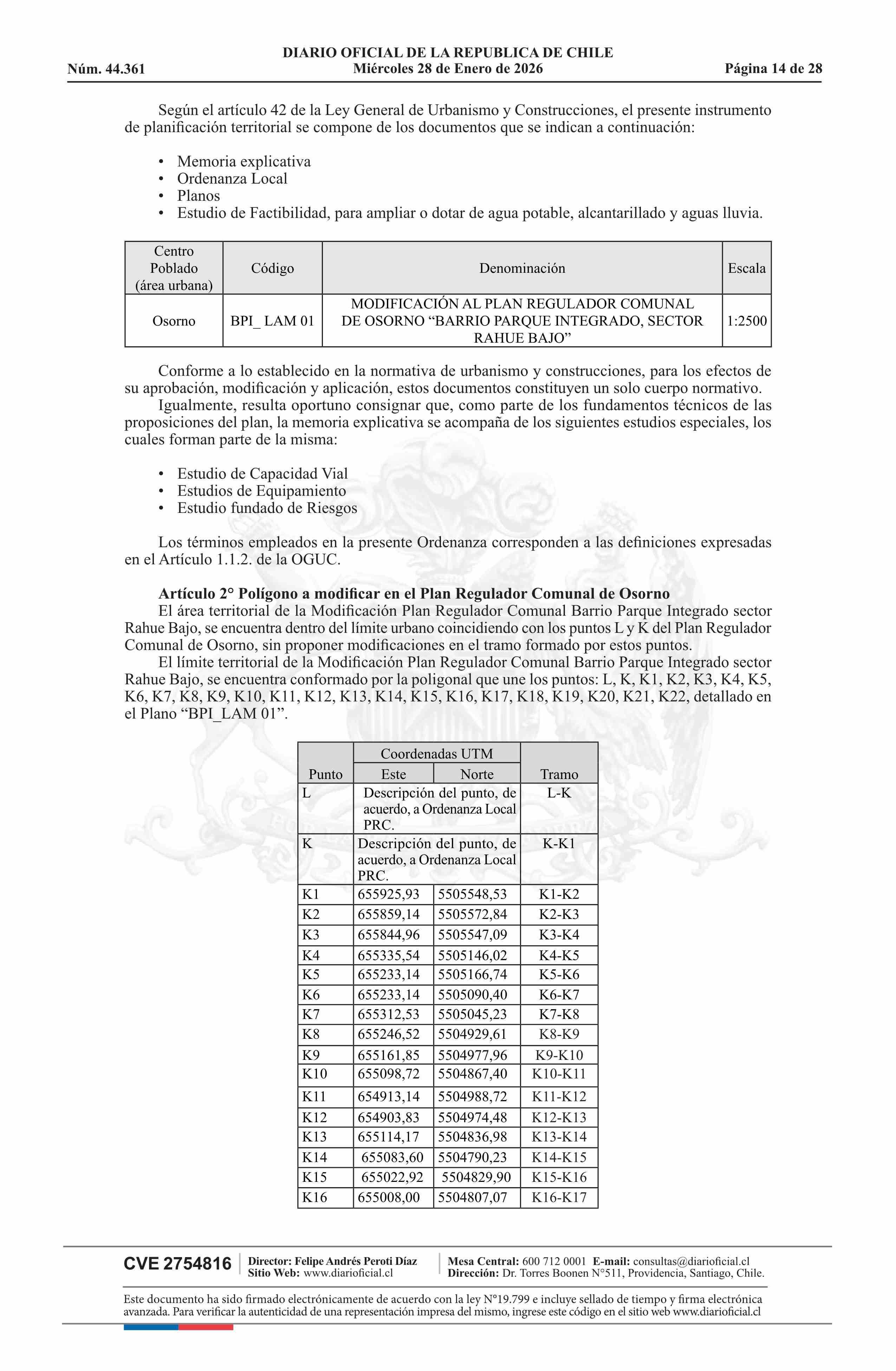 Resolución número 9, de 2025.- Promulga aprobación de la modificación del Plan Regulador Comunal de Osorno - Barrio Parque Integrado, Sector Rahue Bajo 28-01-2026 Diario Oficial Edición Electrónica |