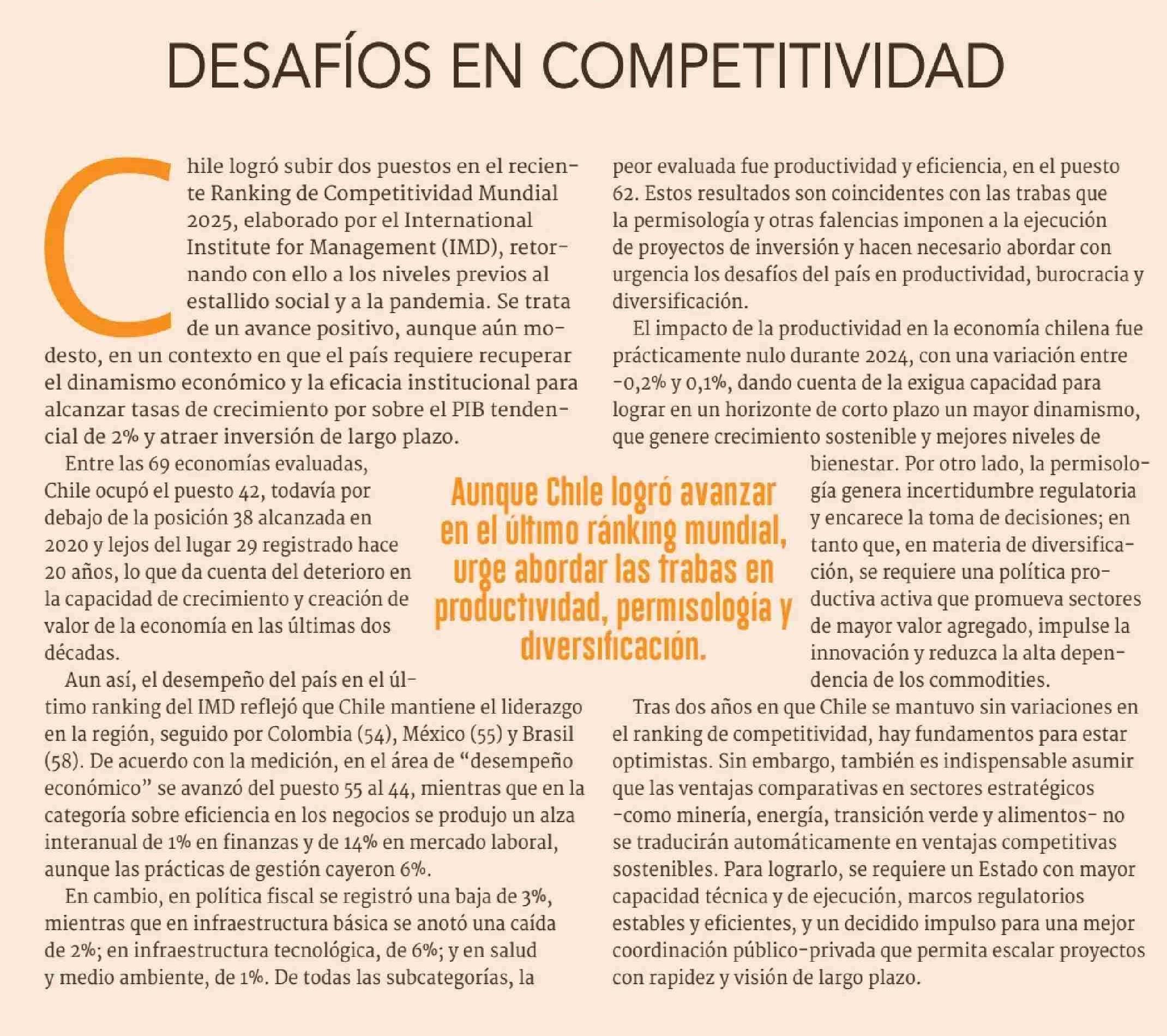 EDITORIAL: DESAFÍOS EN COMPETITIVIDAD 18-06-2025 Diario Financiero |