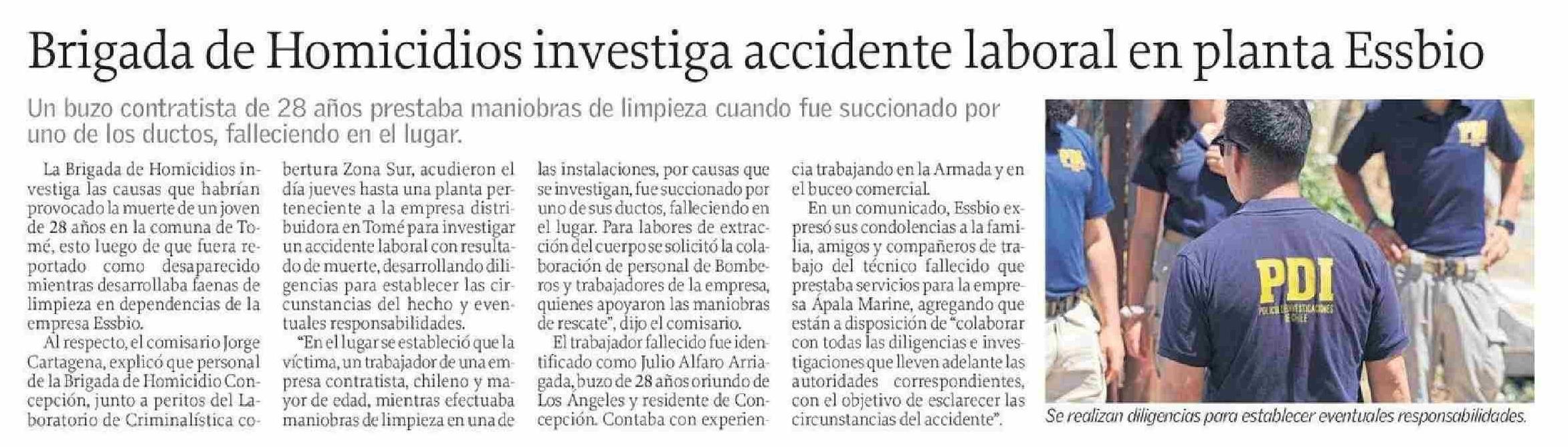 Título: Brigada de Homicidios investiga accidente laboral en planta Essbio
