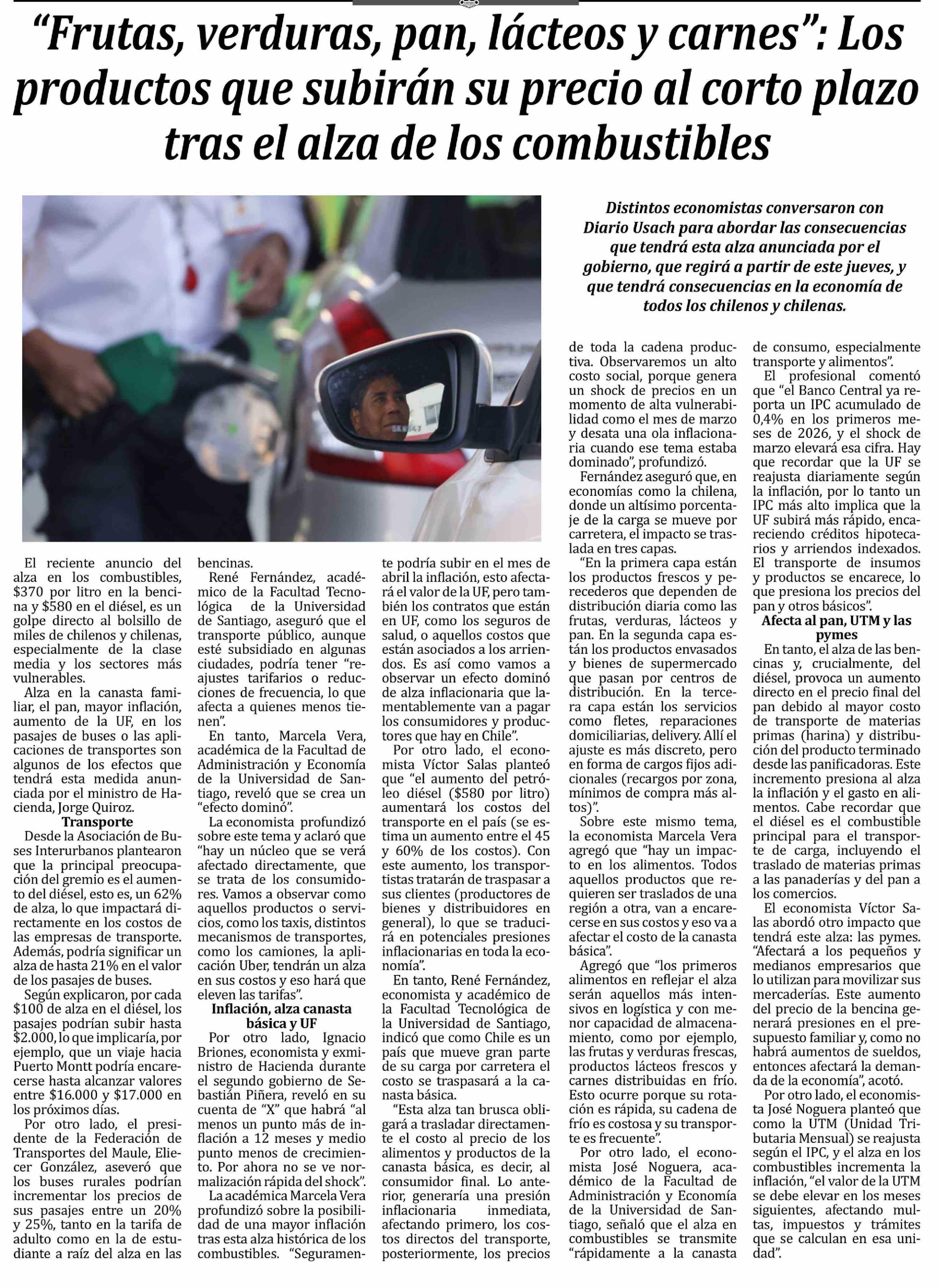"Frutas, verduras, pan, lácteos y carnes": Los productos que subirán su precio al corto plazo tras el alza de los combustibles 26-03-2026 Las Noticias |