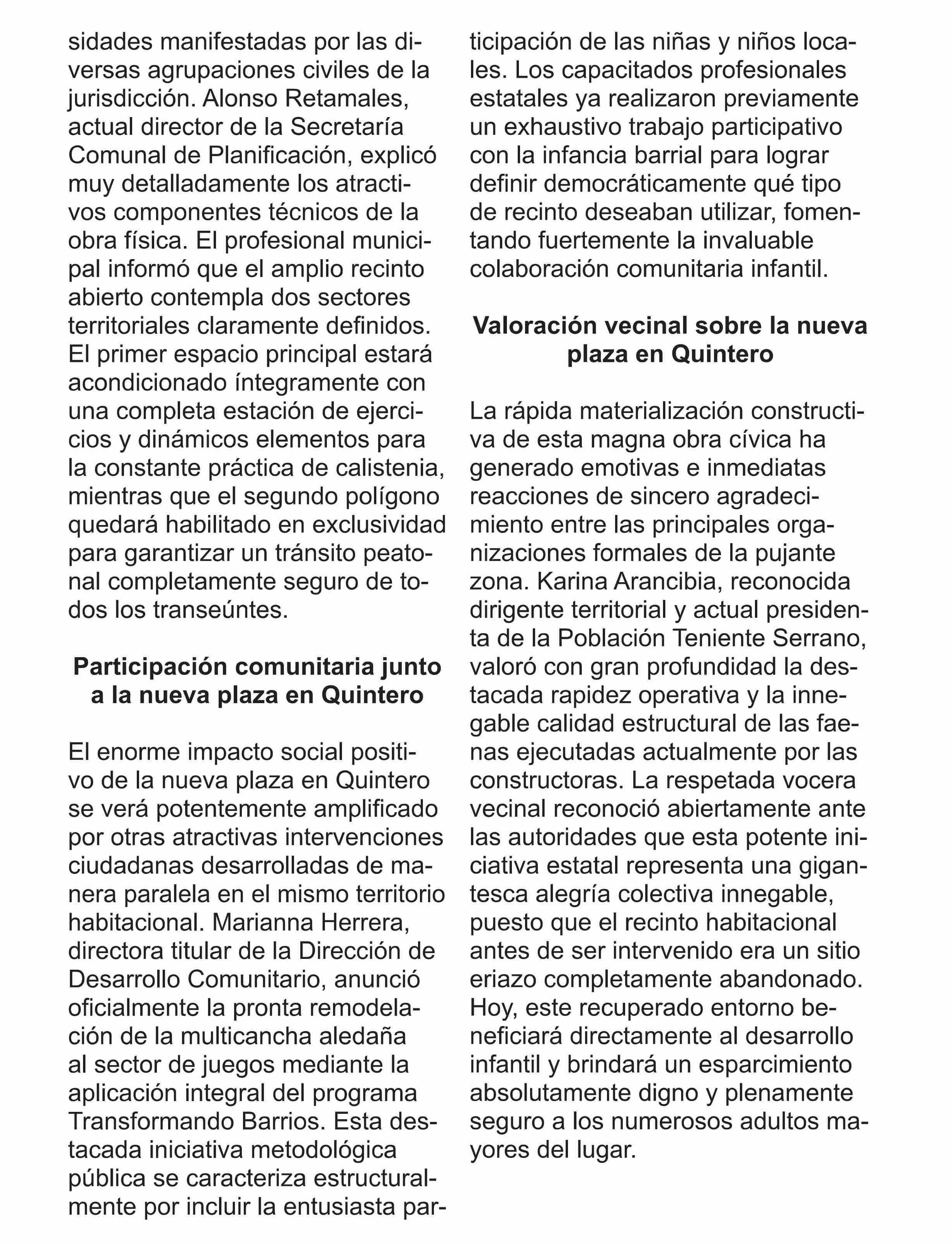 Inversión impulsa la construcción de la nueva plaza en Quintero 21-04-2026 Contraplano Reñaca-Concón-Quintero-Puchuncavi-Zapa |