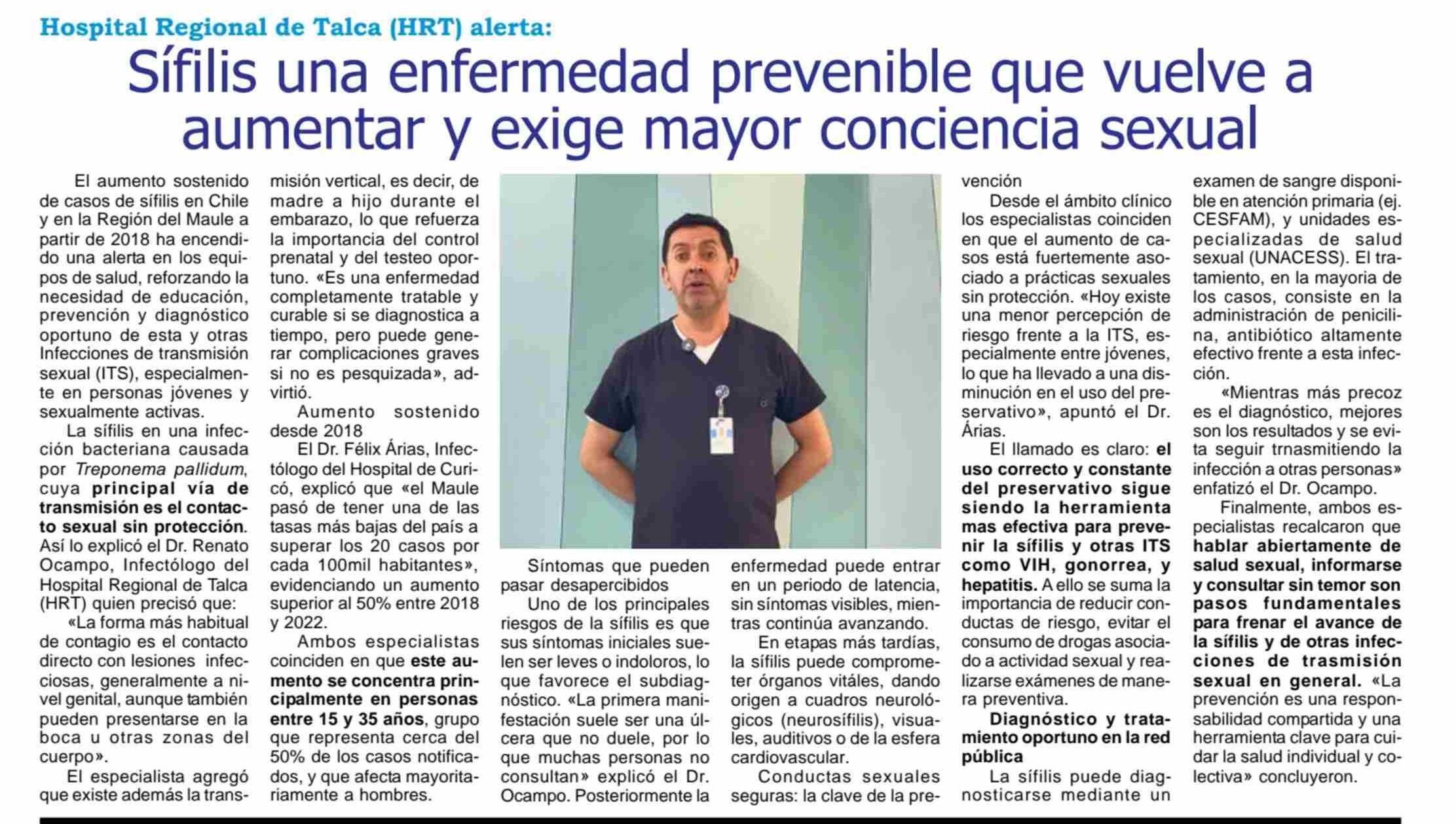 Sifilis una enfermedad prevenible que vuelve a aumentar y exige mayor conciencia sexual 29-01-2026 Maule Hoy |