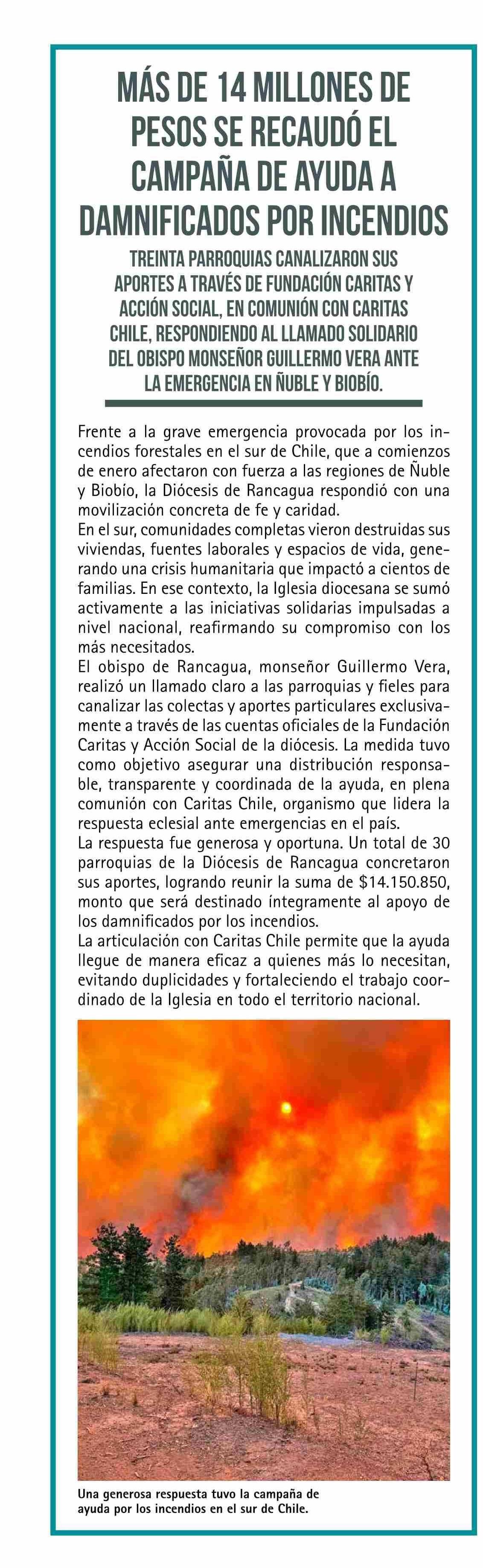 MÁS DE 14 MILLONES DE PESOS SE RECAUDO EL CAMPAÑA DE AYUDA A DAMNIFICADOS POR INCENDIOS 01-03-2026 El Rancagüino |