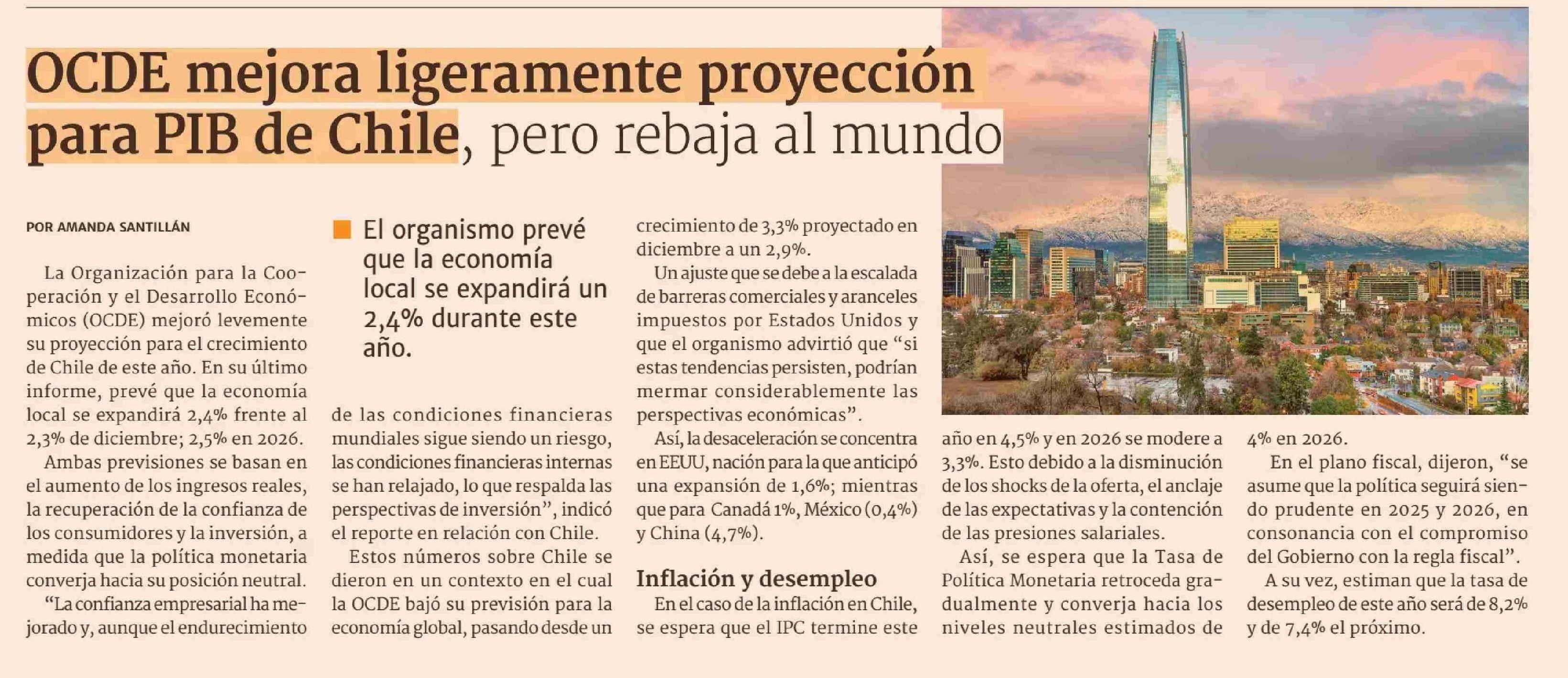 Título: OCDE mejora ligeramente proyección para PIB de Chile, pero rebaja al mundo
