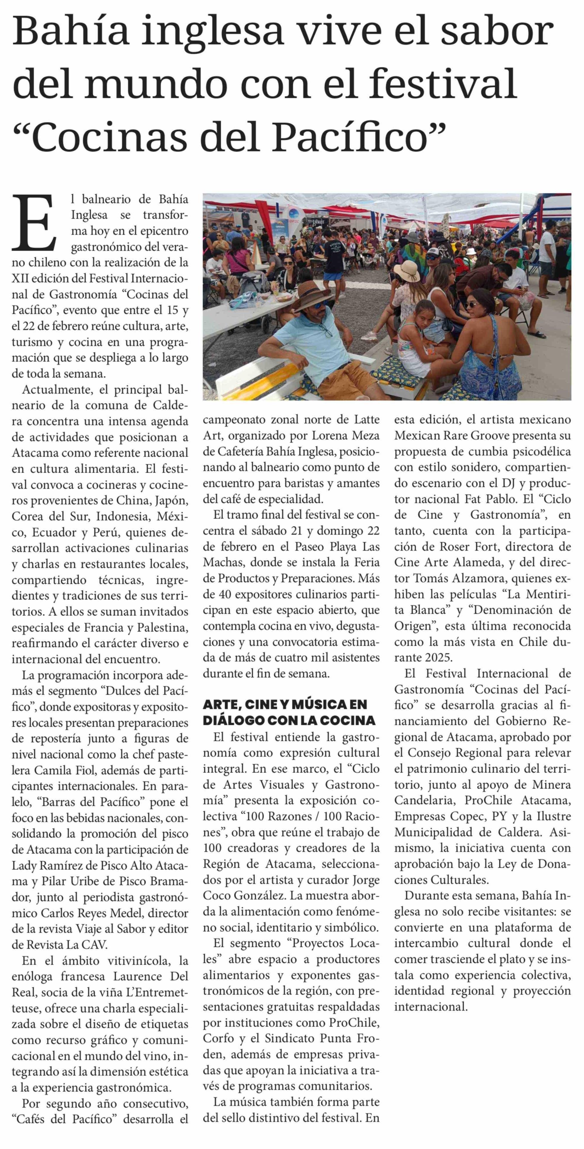 Bahía inglesa vive el sabor del mundo con el festival "Cocinas del Pacífico" 18-02-2026 Diario Chañarcillo |