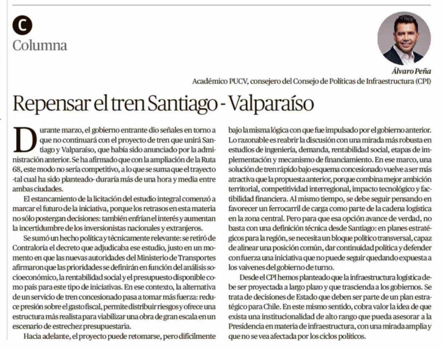 Título: Columnas de Opinión: Repensar el tren Santiago - Valparaíso