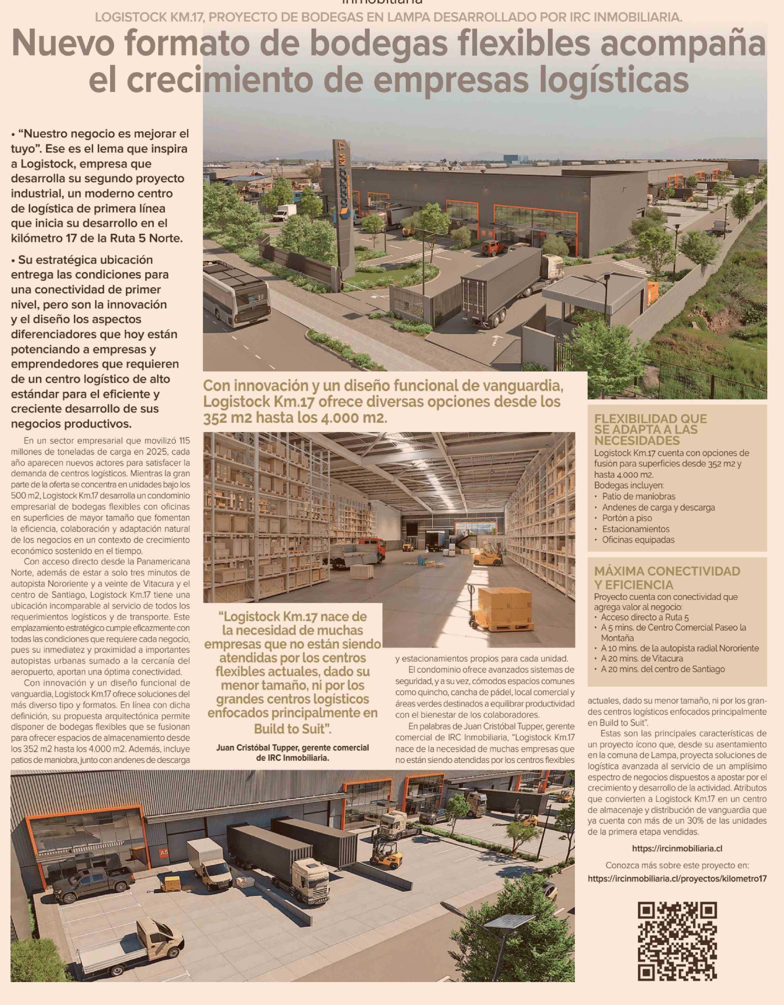 Nuevo formato de bodegas flexibles acompaña el crecimiento de empresas logísticas 17-03-2026 Diario Financiero |