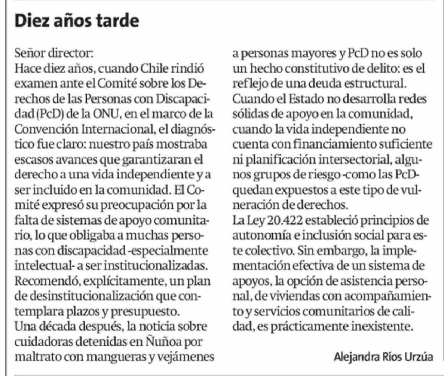 Título: Columnas de Opinión: Diez años tarde