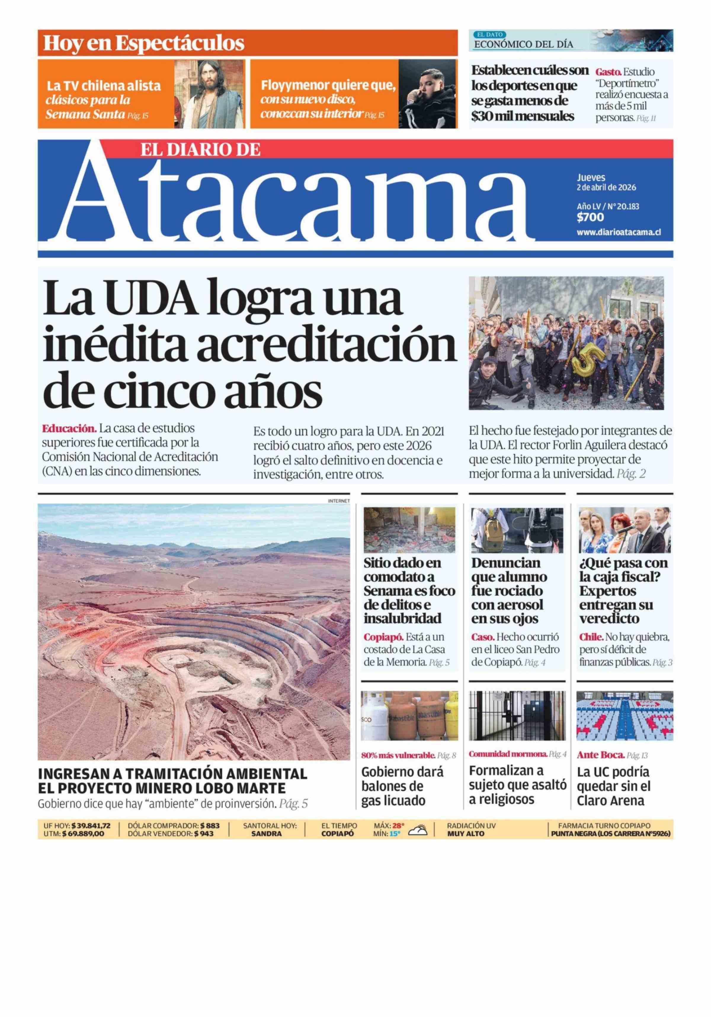 Fecha: 02-04-2026 Sector: Portada Región: Región de Atacama