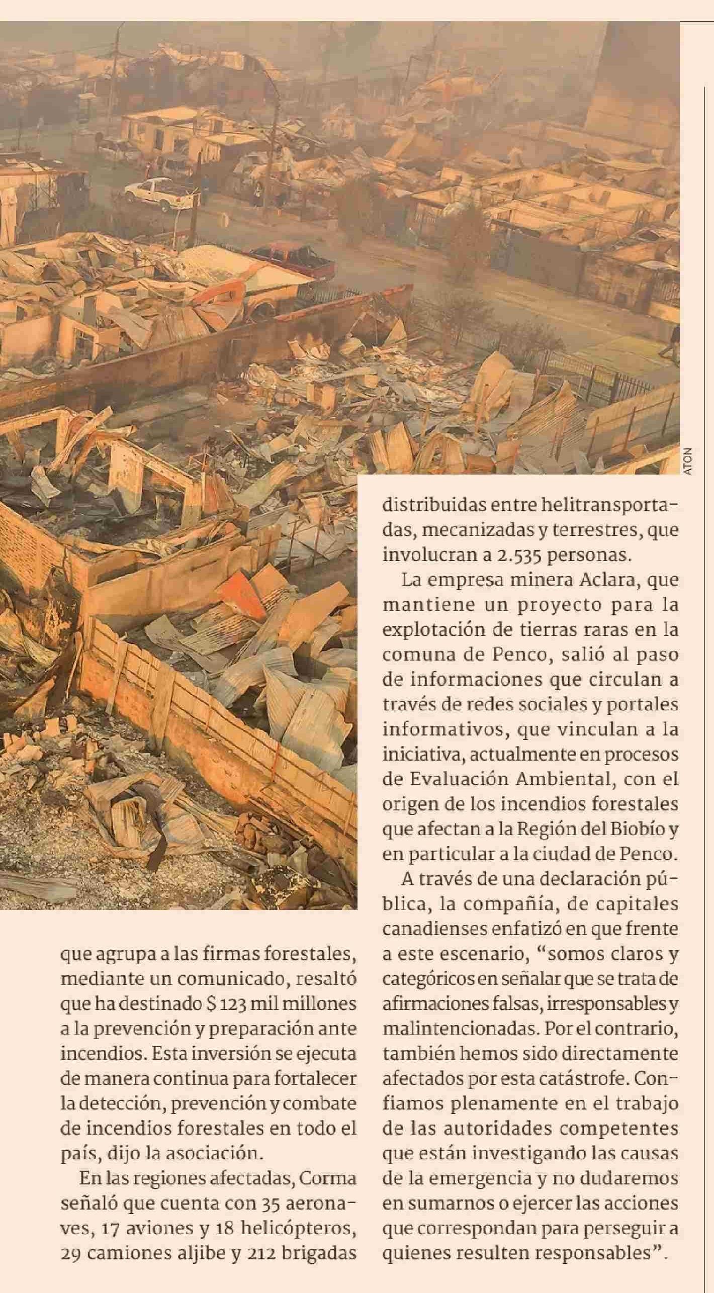 Se intensifican daños por incendios y Contraloría advierte que emergencia pone en riesgo financiamiento del reajuste 20-01-2026 Diario Financiero |