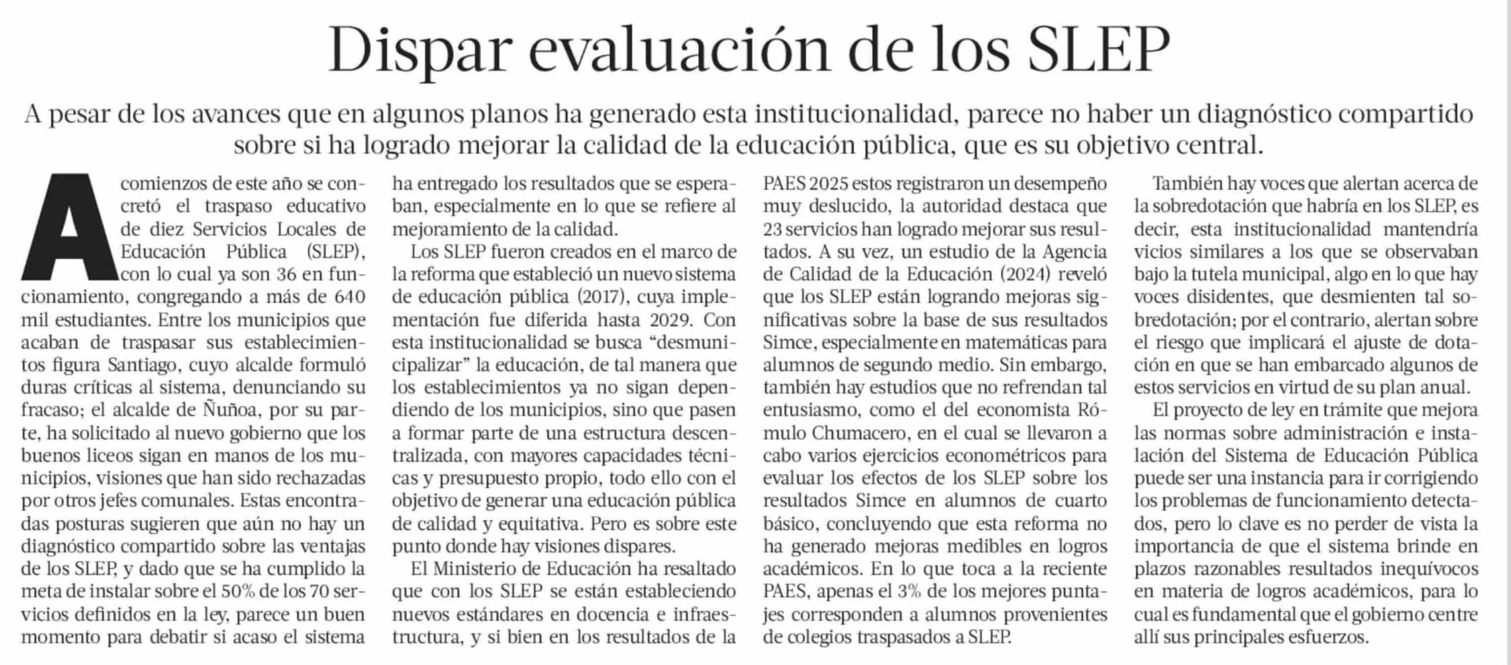 Editorial: Dispar evaluación de los SLEP 12-01-2026 La Tercera |