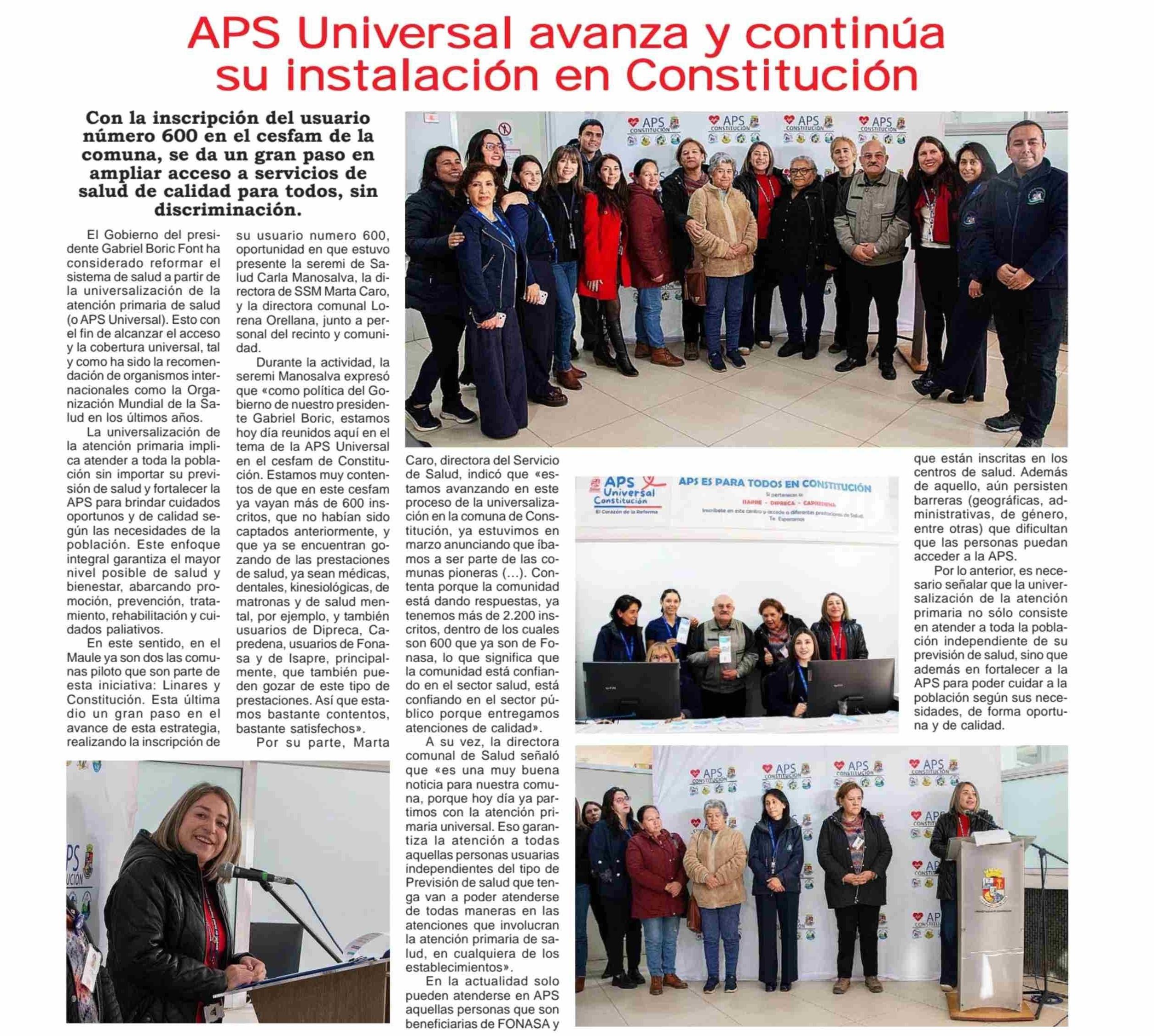 | Título: | APS Universal avanza y continúa su instalación en Constitución |