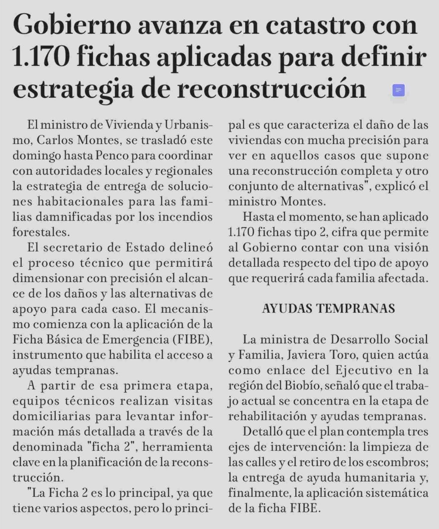 Título: Gobierno avanza en catastro con 1.170 fichas aplicadas para definir estrategia de reconstrucción