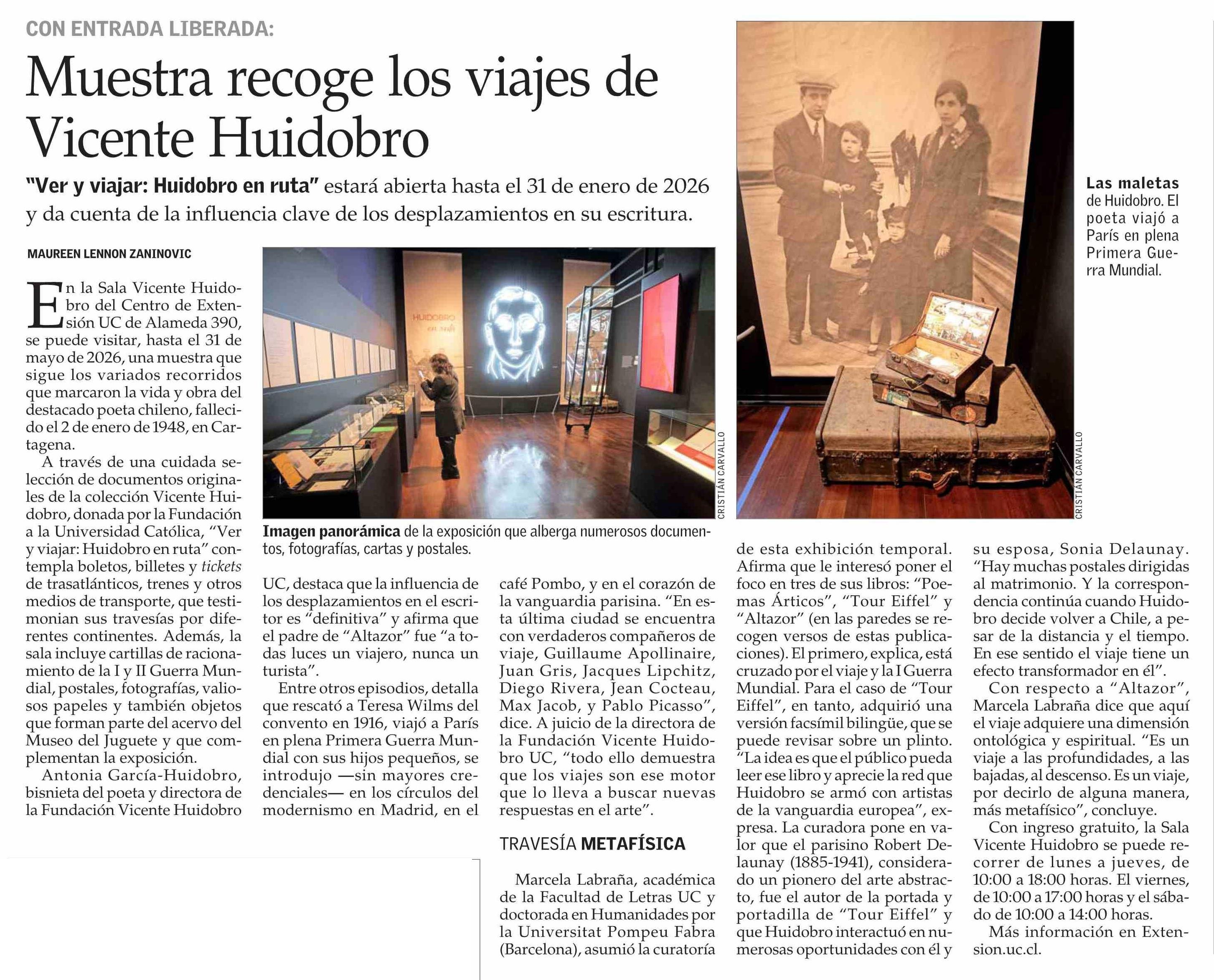 Muestra recoge los viajes de Vicente Huidobro 03-06-2025 El Mercurio |