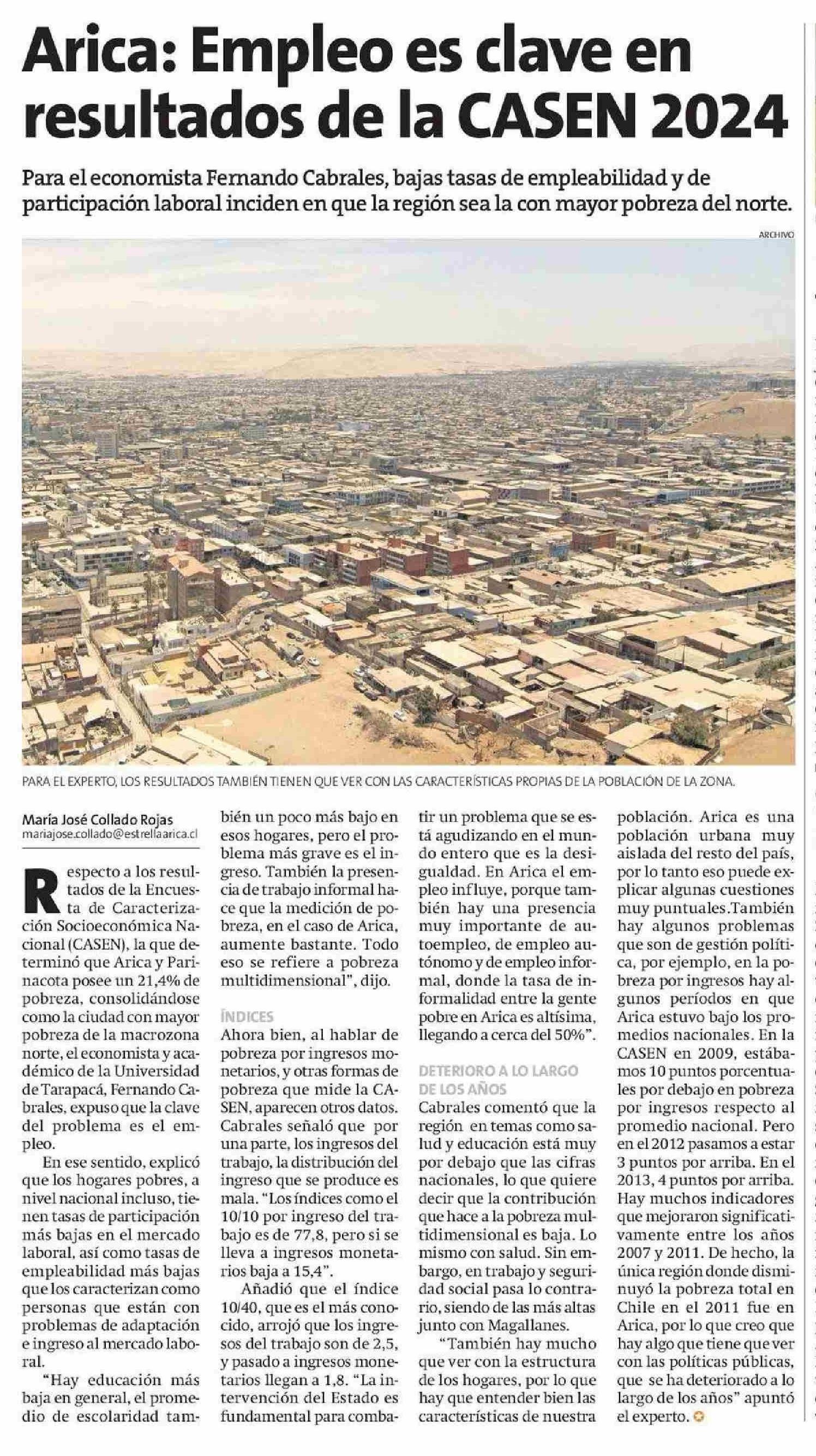 Arica: Empleo es clave en resultados de la CASEN 2024 13-01-2026 La Estrella de Arica |