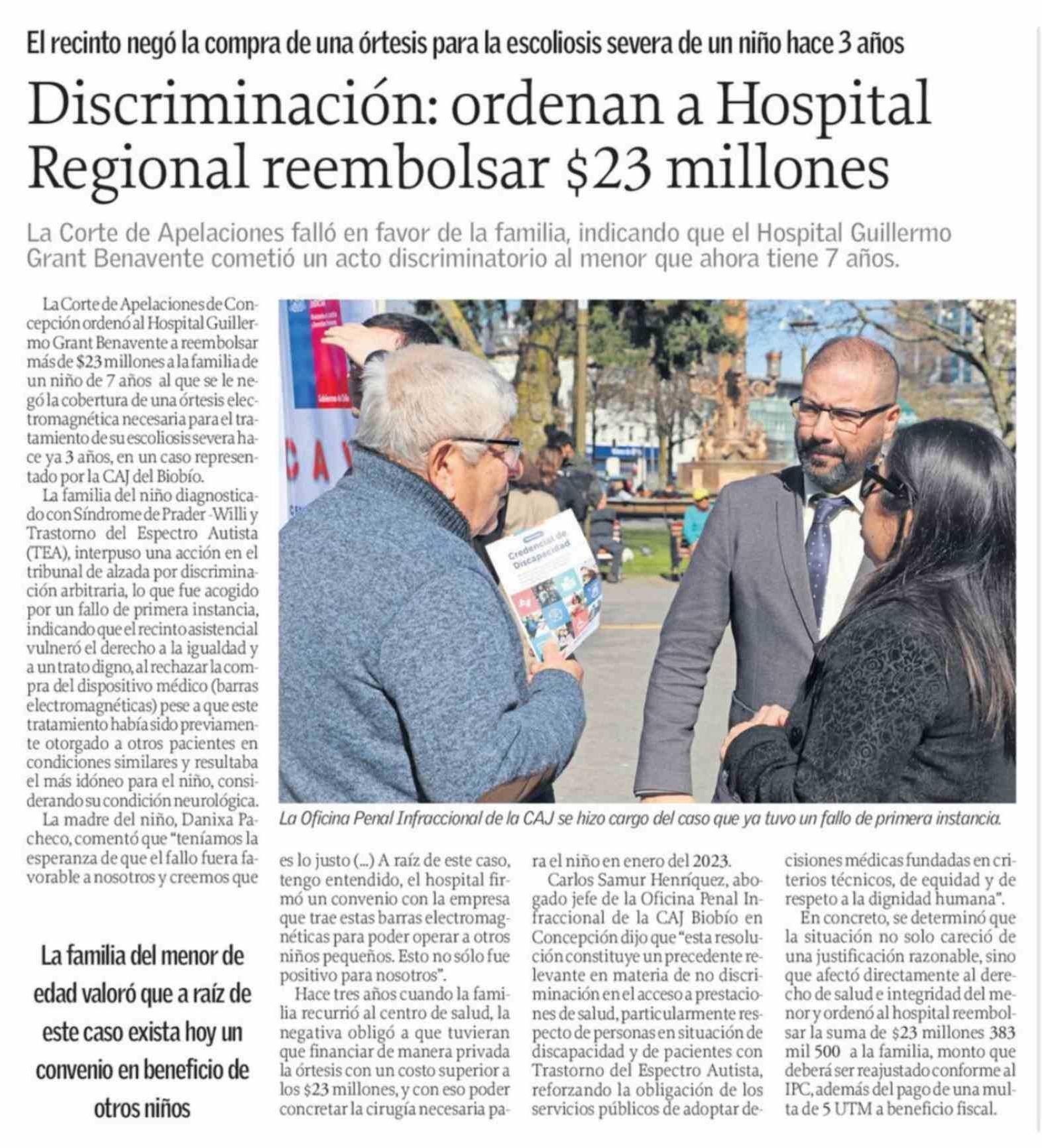 Discriminación: ordenan a Hospital Regional reembolsar $23 millones 06-04-2026 El Sur |