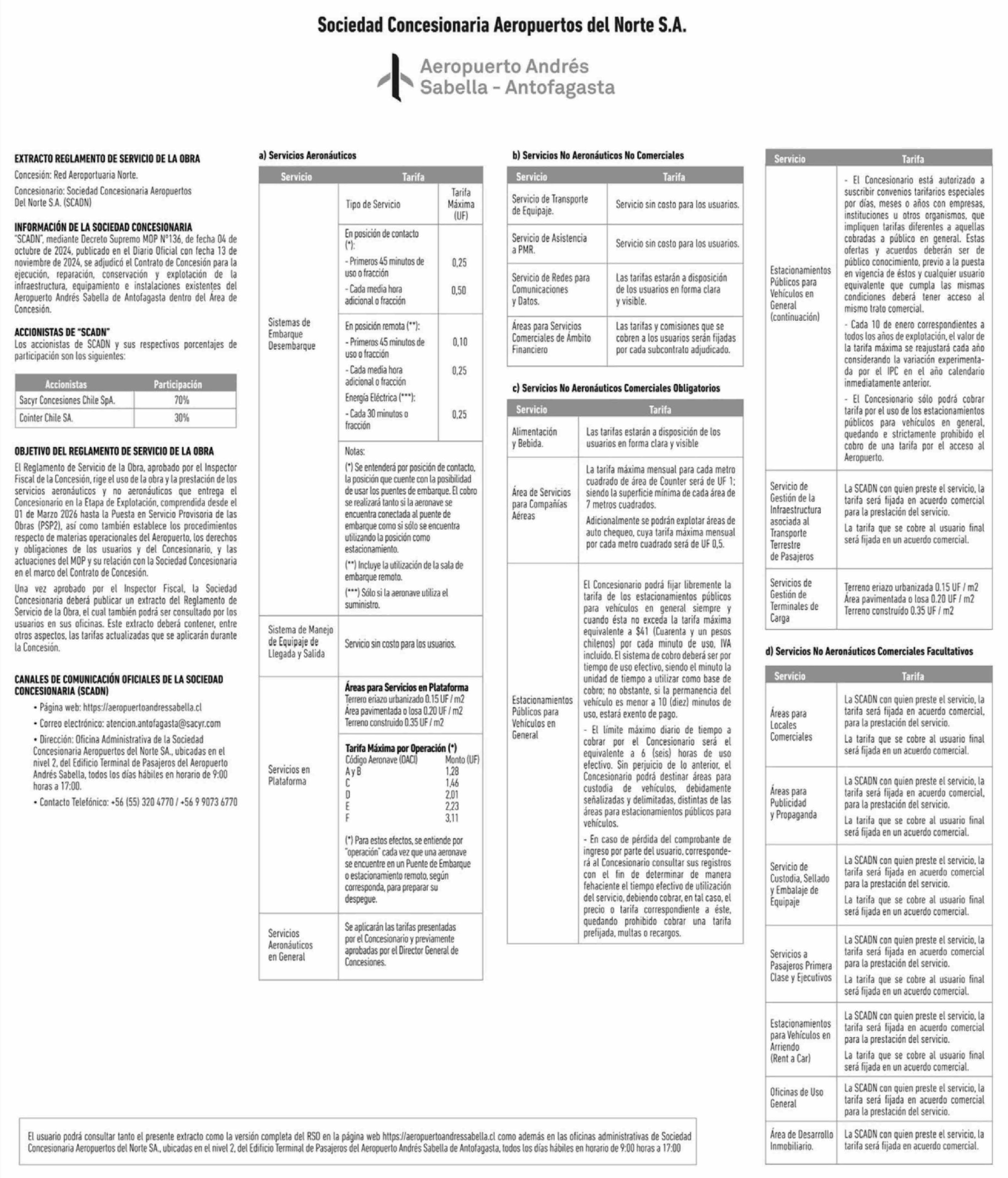 Extractos: Sociedad Concesionaria Aeropuertos del Norte S.A. Aeropuerto Andrés Sabella - Antofagasta