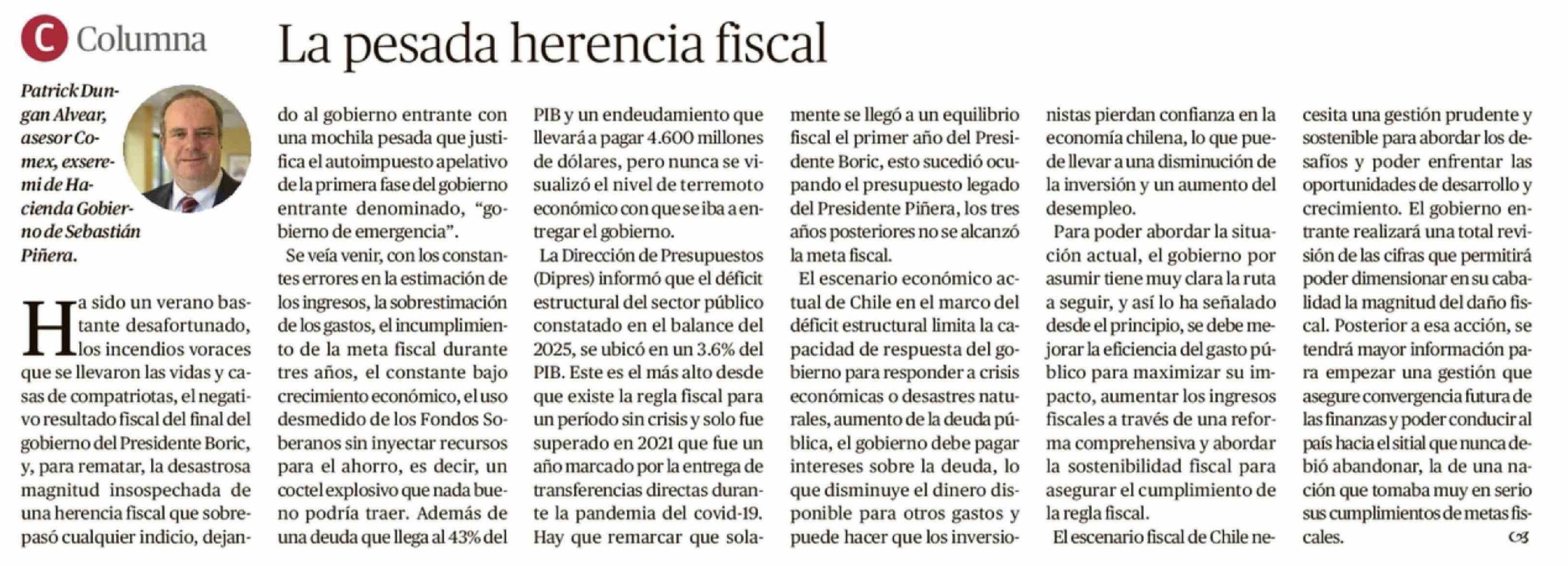 Columnas de Opinión: La pesada herencia fiscal 24-02-2026 El Austral de la Araucanía |