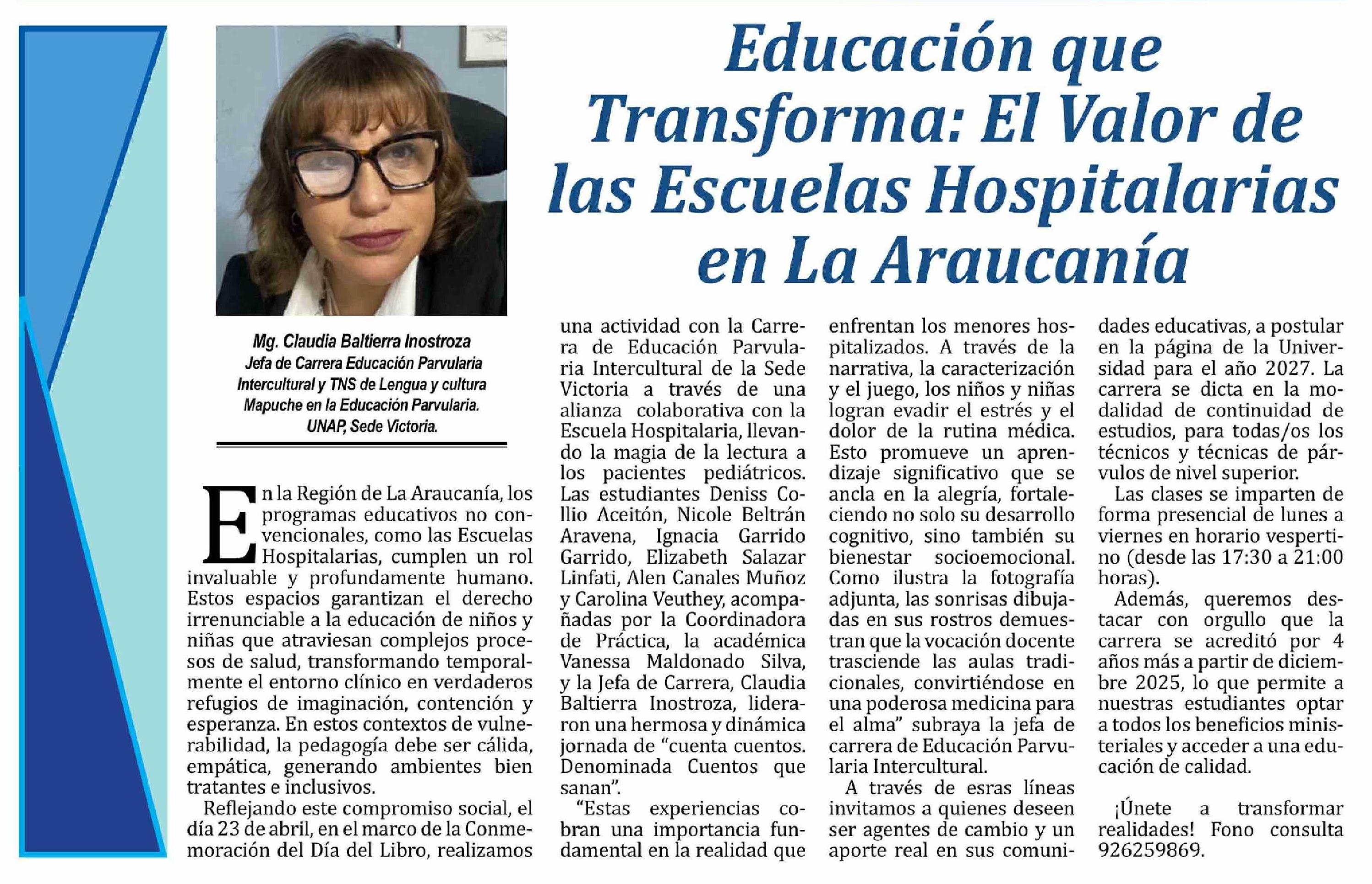 Educación que Transforma: El Valor de las Escuelas Hospitalarias en La Araucanía 25-04-2026 Las Noticias |