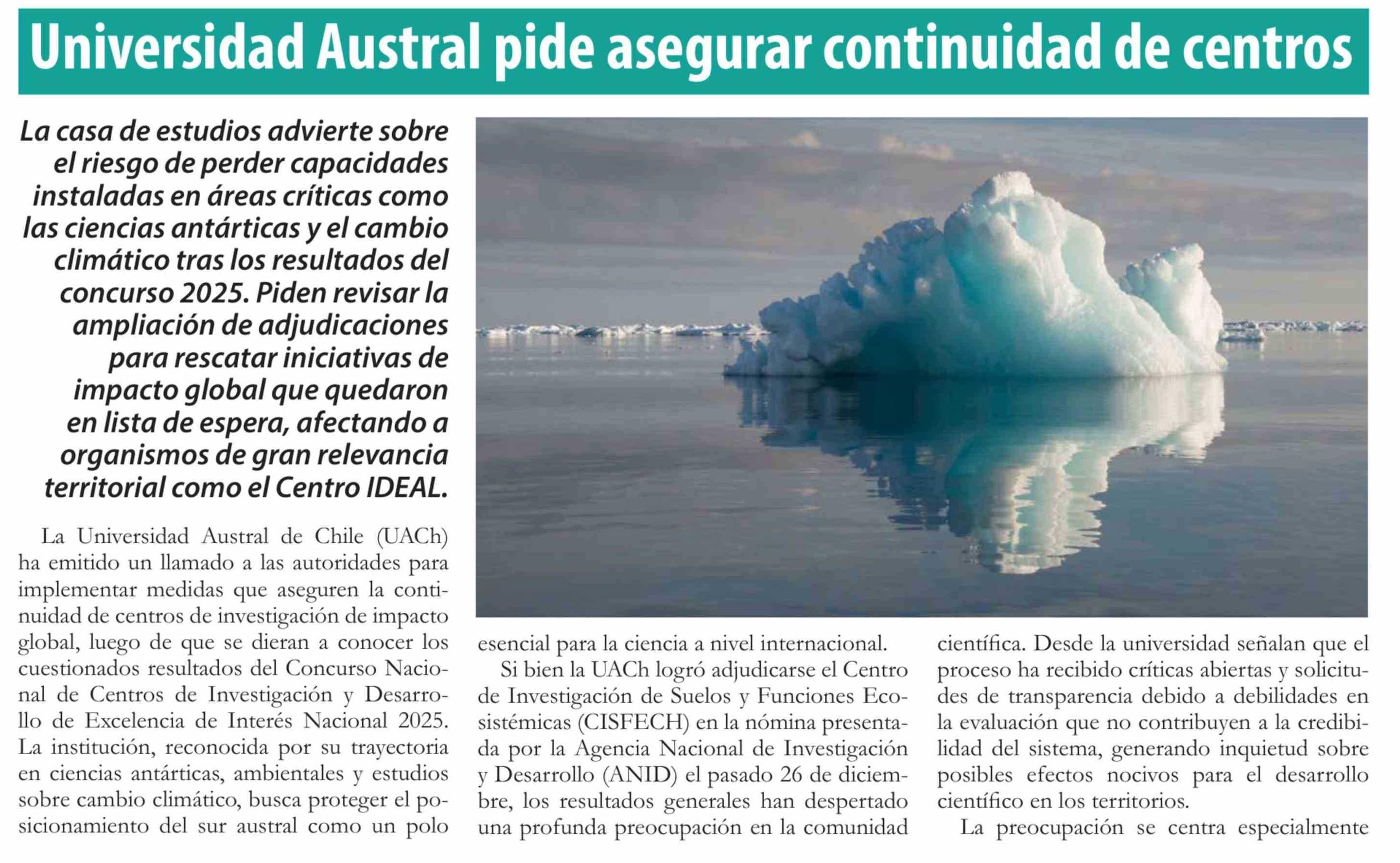 | Título: | Universidad Austral pide asegurar continuidad de centros |