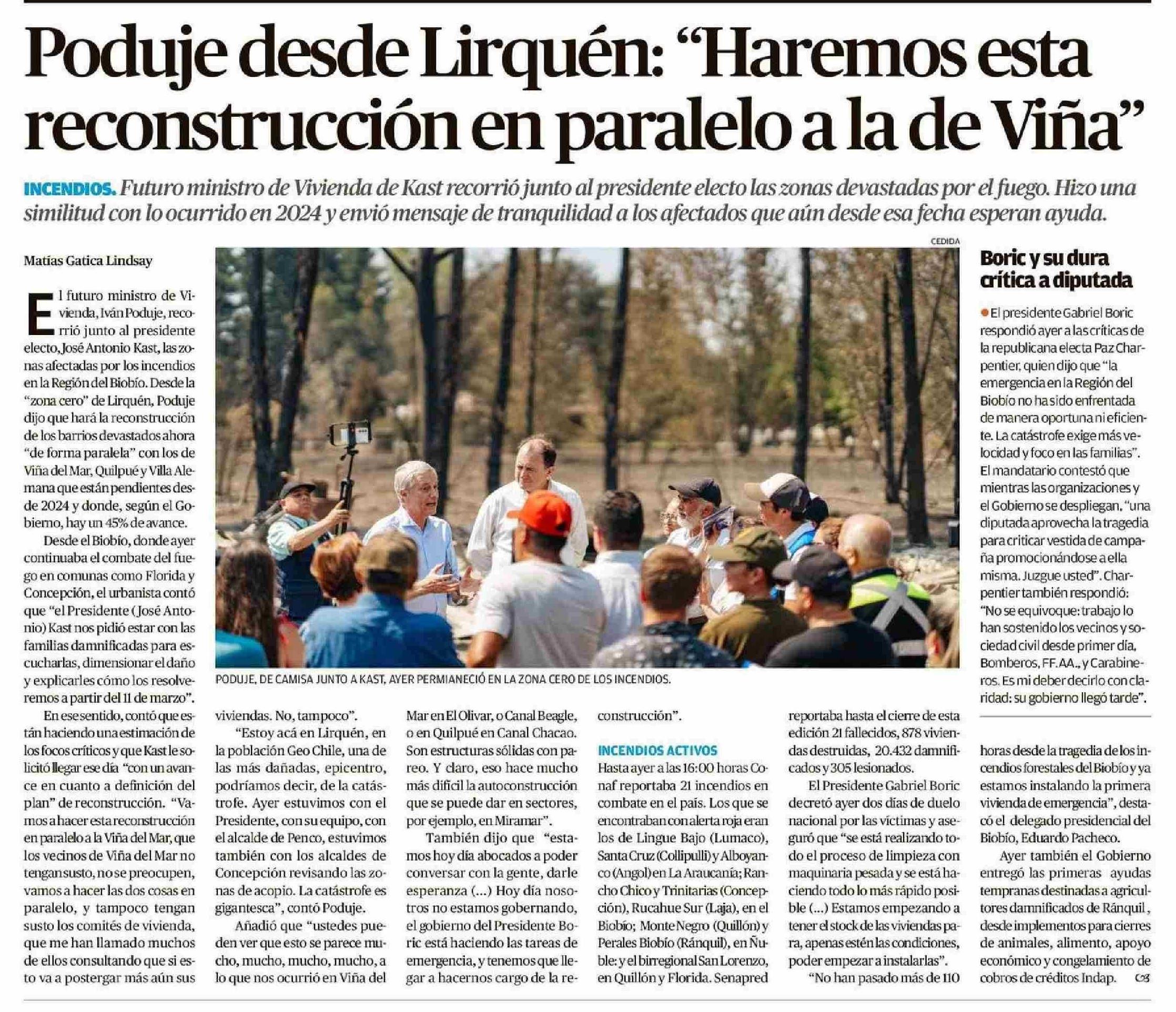 Poduje desde Lirquén: "Haremos esta reconstrucción en paralelo a la de Viña" 23-01-2026 Diario Austral Región de Los Ríos |