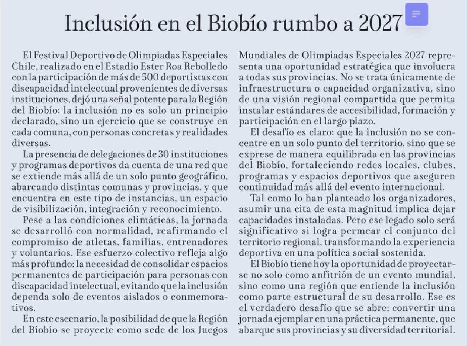 Título: Editorial: Inclusión en el Biobío rumbo a 2027