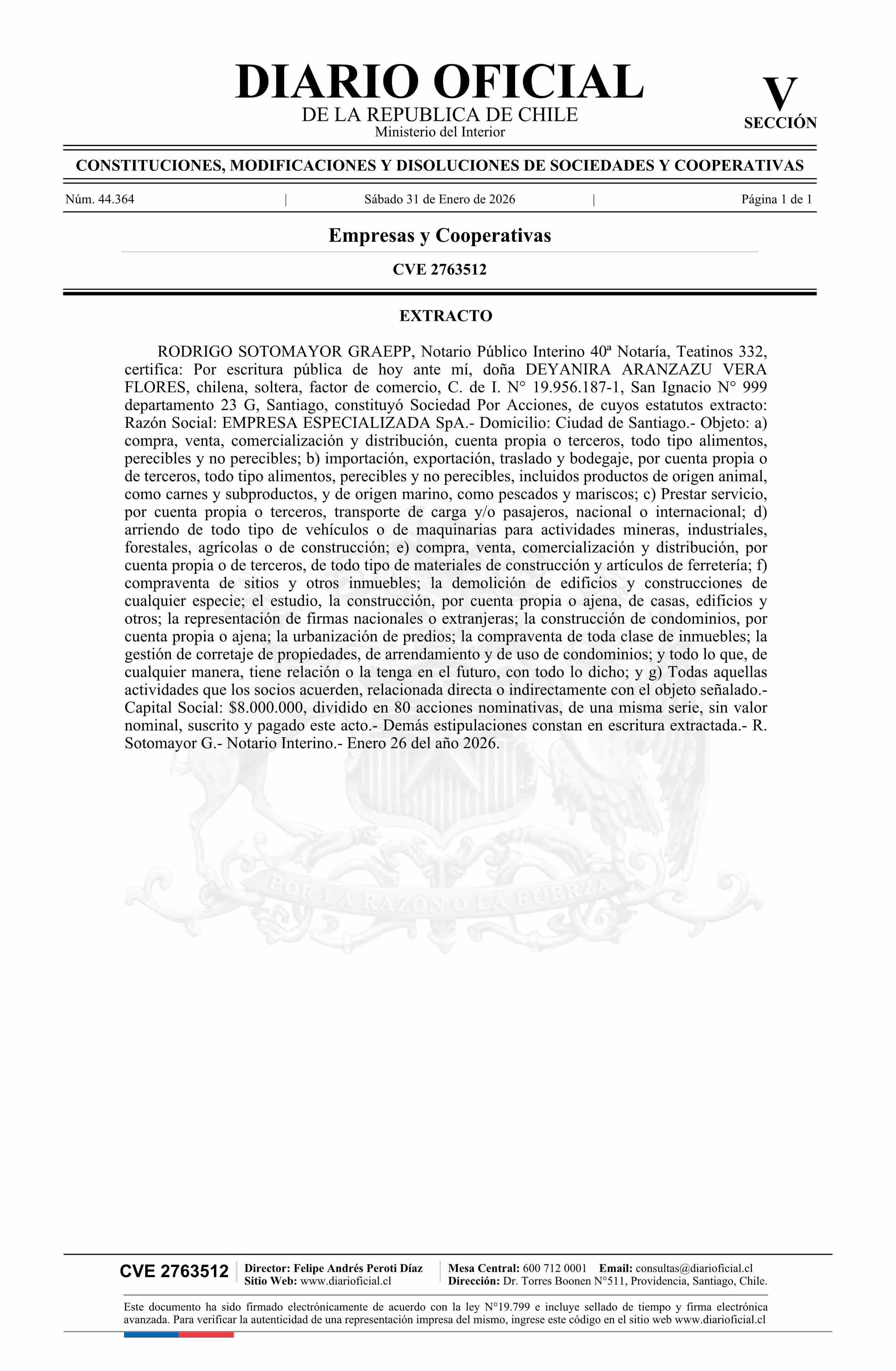 EMPRESA ESPECIALIZADA SpA 31-01-2026 Diario Oficial Edición Electrónica |