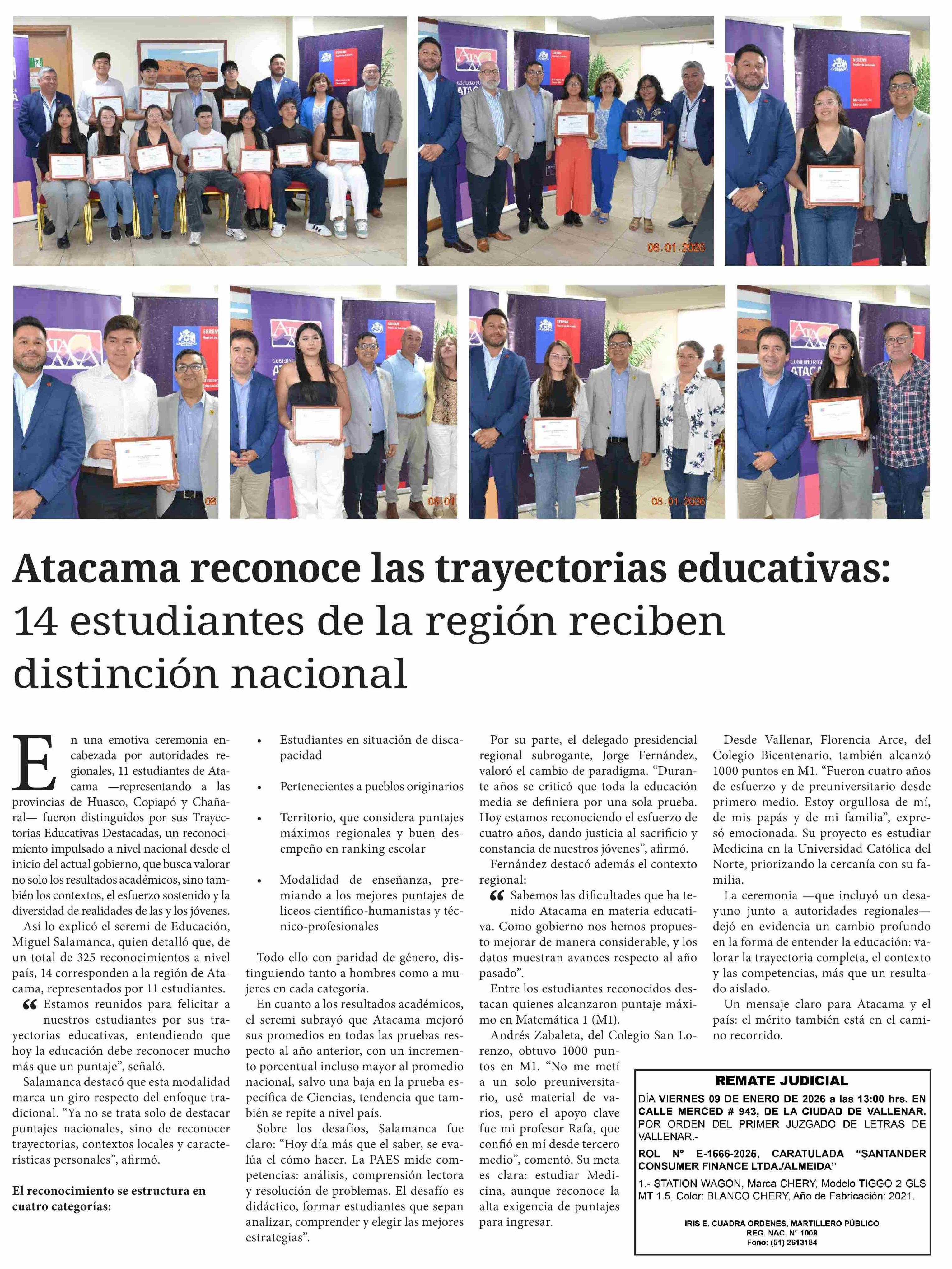 Título: Atacama reconoce las trayectorias educativas: 14 estudiantes de la región reciben distinción nacional