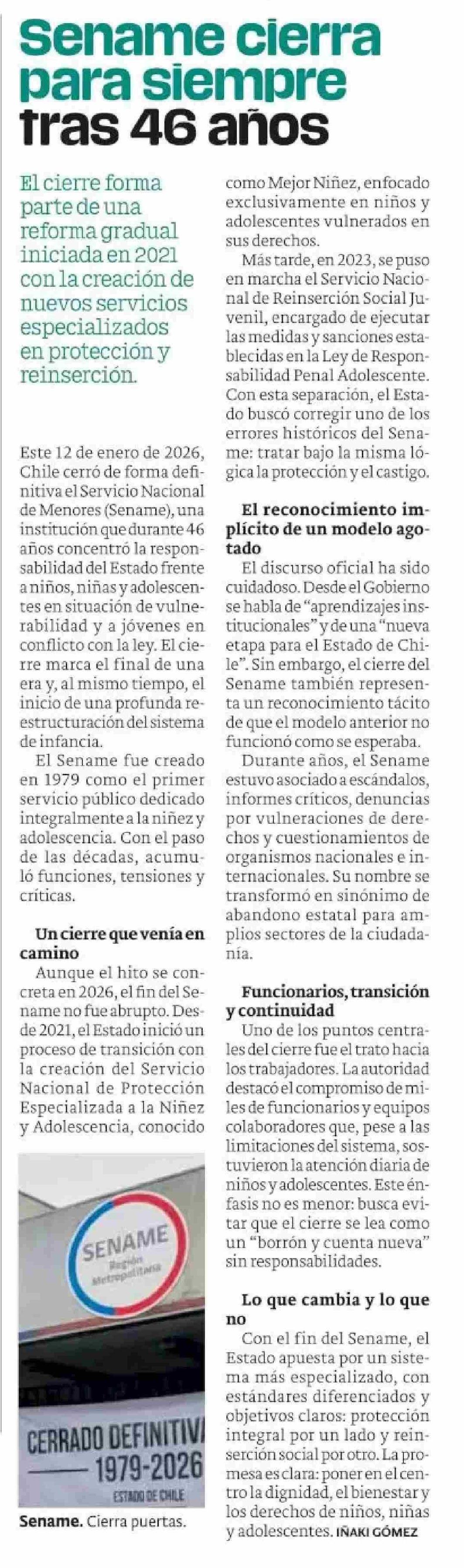 Sename cierra para siempre tras 46 años 13-01-2026 Publimetro |