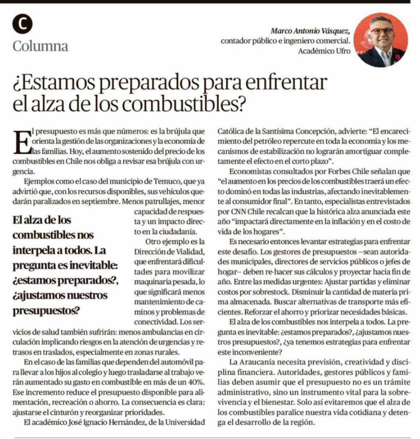 Título: Columnas de Opinión: ¿Estamos preparados para enfrentar el alza de los combustibles?