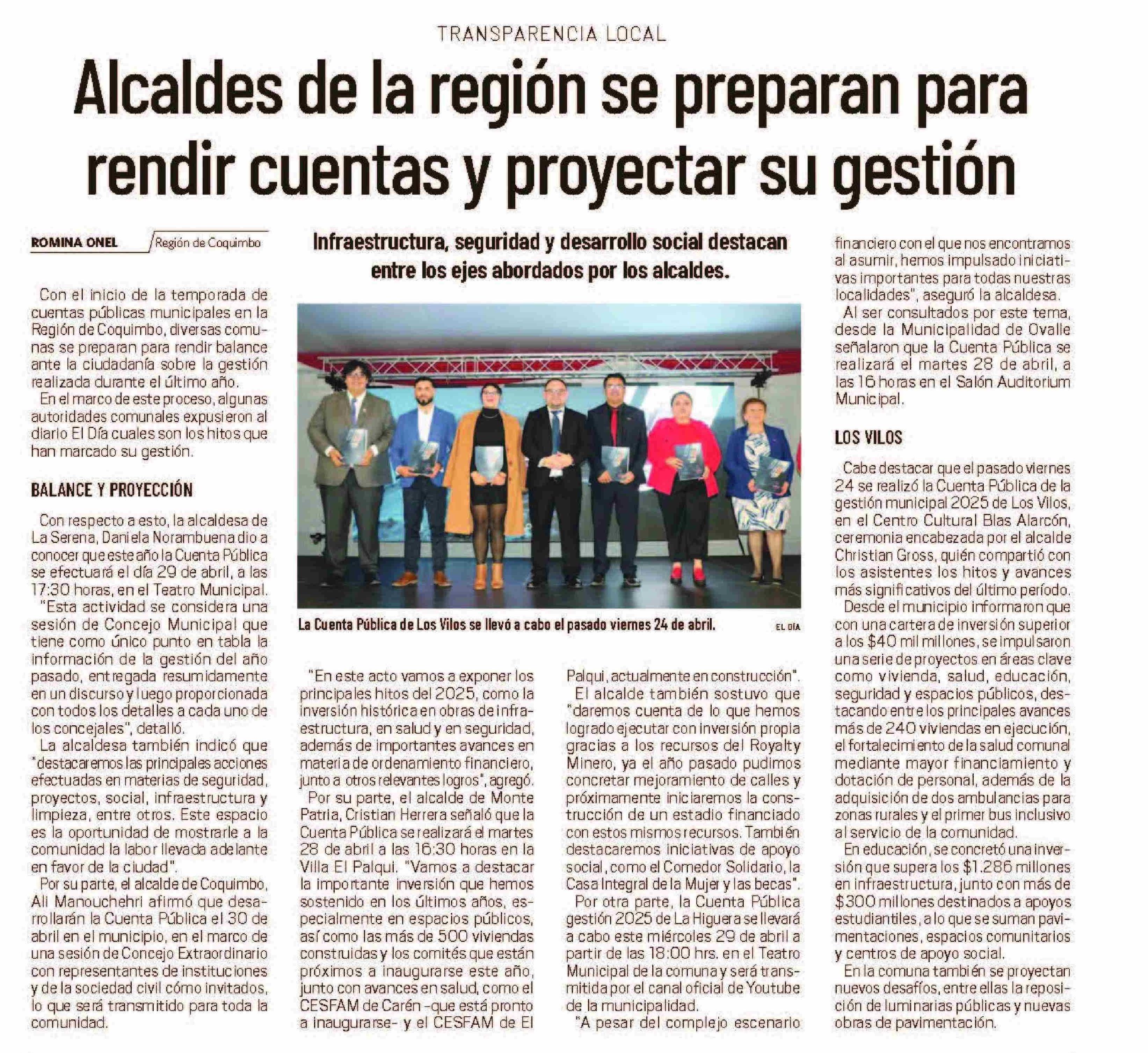Alcaldes de la región se preparan para rendir cuentas y proyectar su gestión 27-04-2026 El Día |