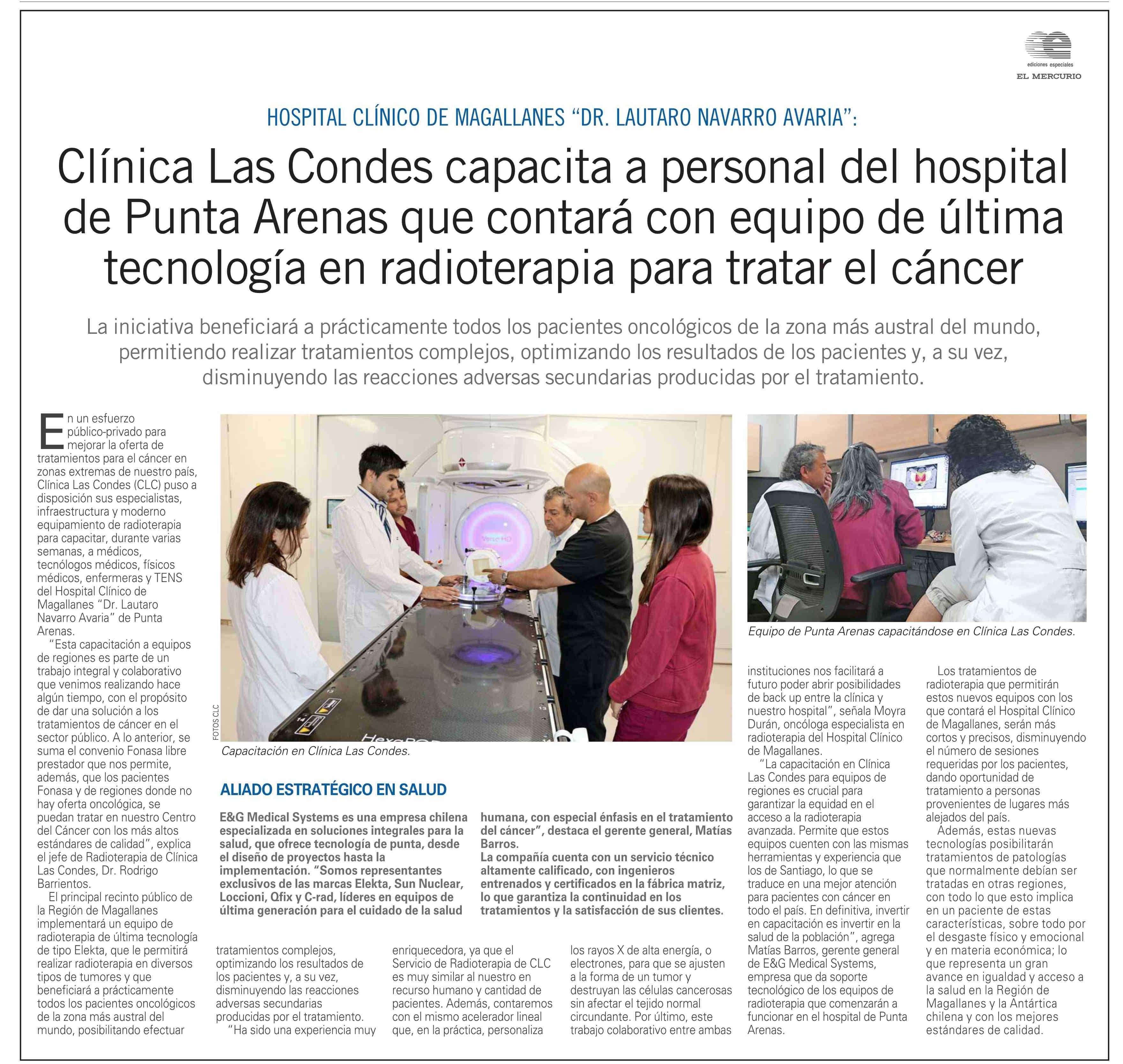 Clínica Las Condes capacita a personal del hospital de Punta Arenas que contará con equipo de última tecnología en radioterapia para tratar el cáncer 14-03-2024 El Mercurio |