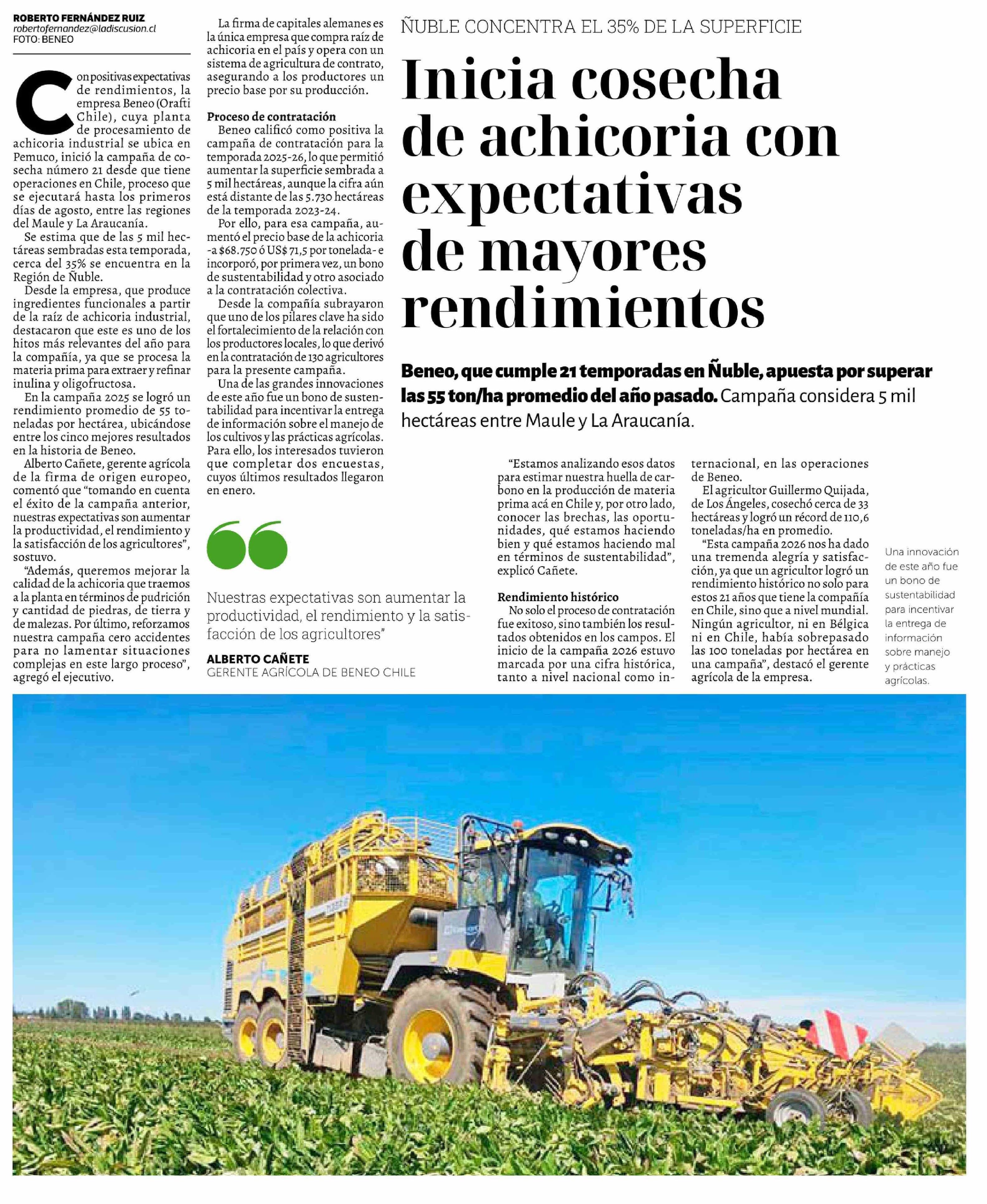 Título: Inicia cosecha de achicoria con expectativas de mayores rendimientos