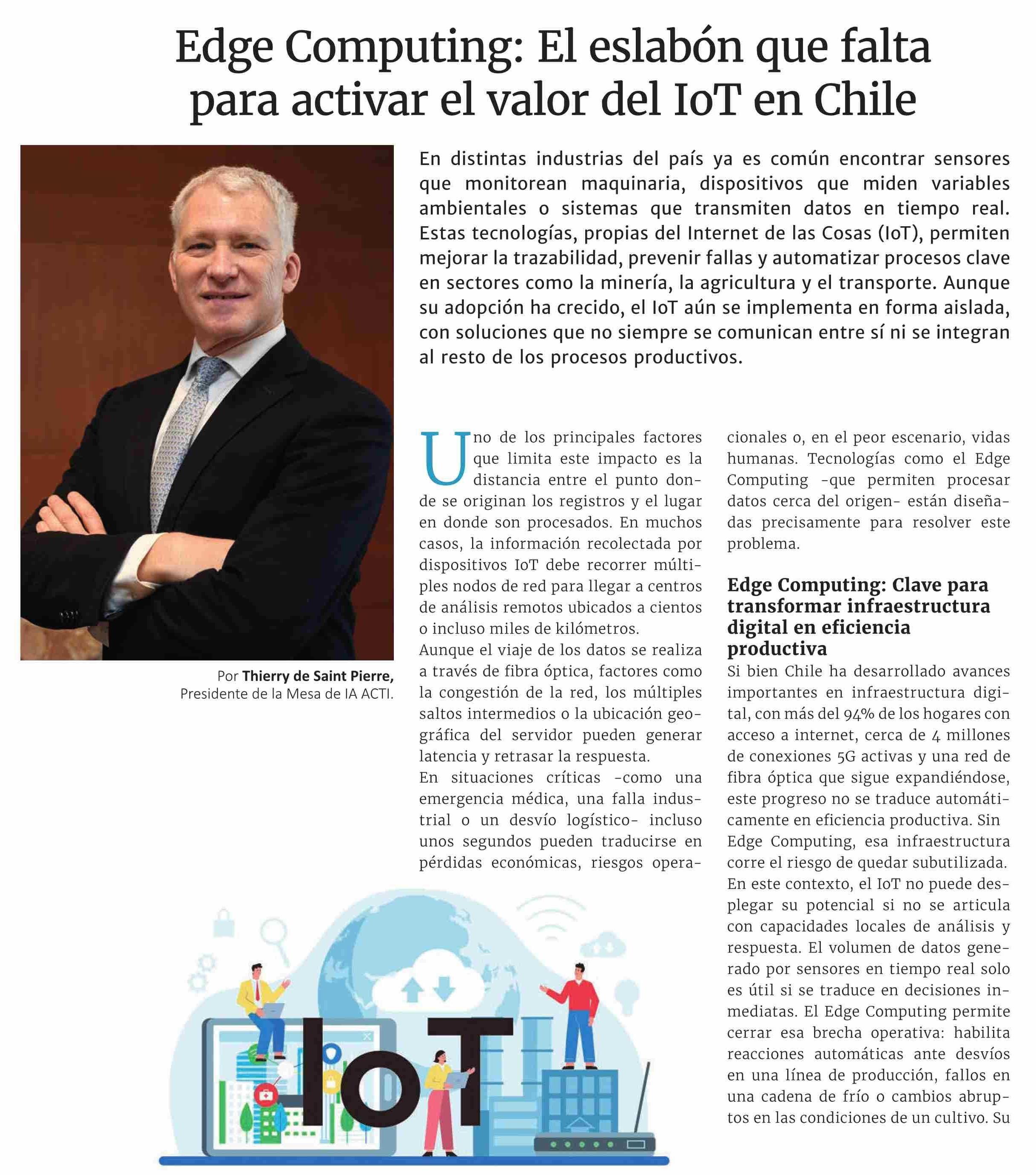 Edge Computing: El eslabón que falta para activar el valor del loT en Chile 30-05-2025 Revista Channel News |