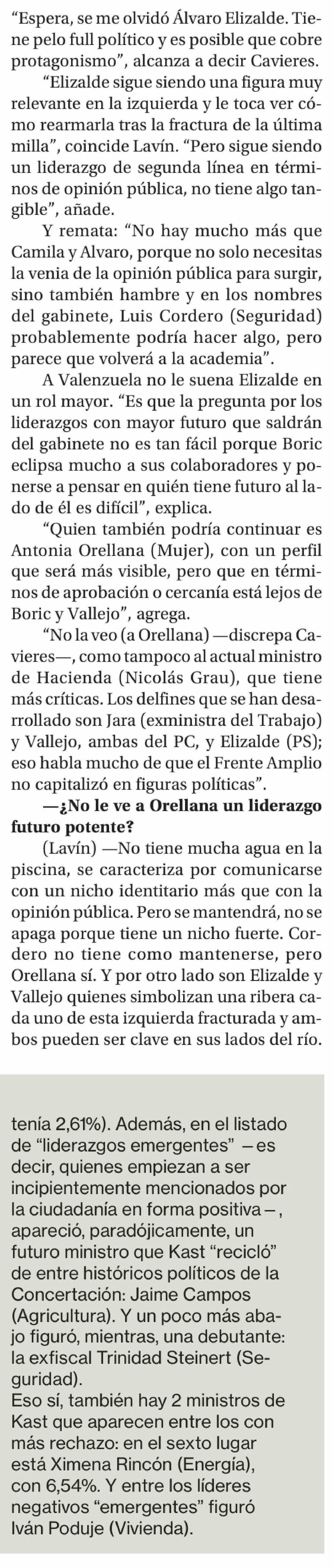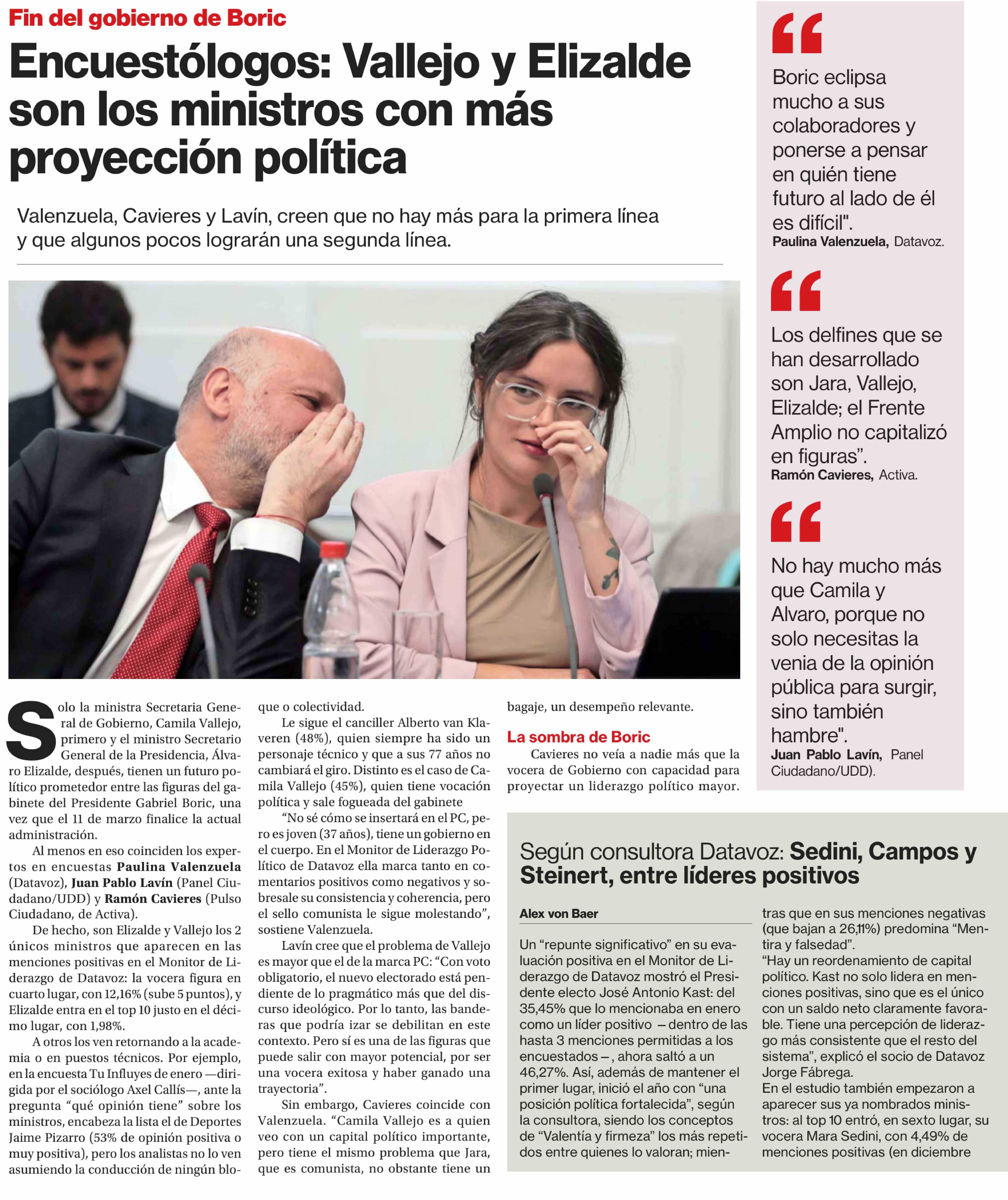 Título: Encuestólogos: Vallejo y Elizalde son los ministros con más proyección política
