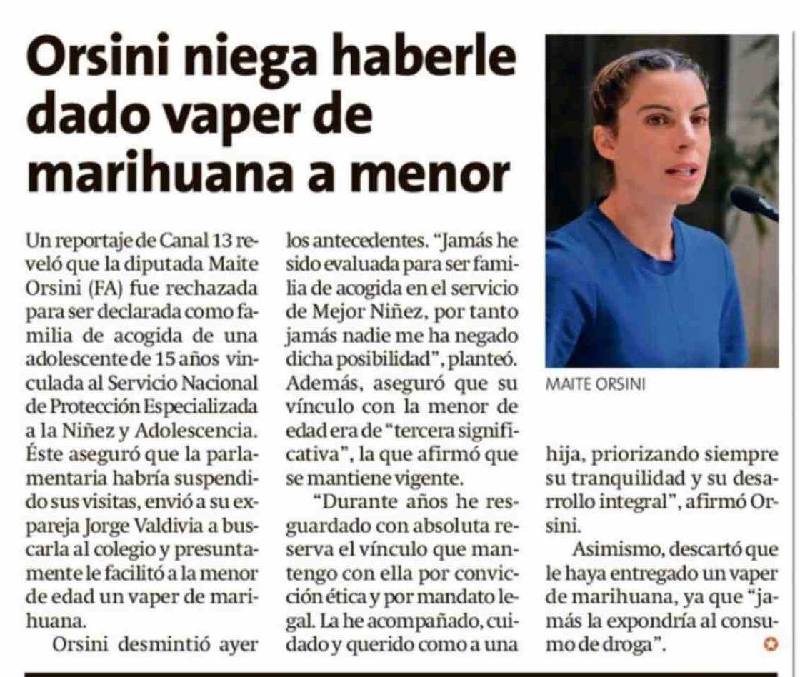 Orsini niega haberle dado vaper de marihuana a menor 05-03-2026 El Líder |