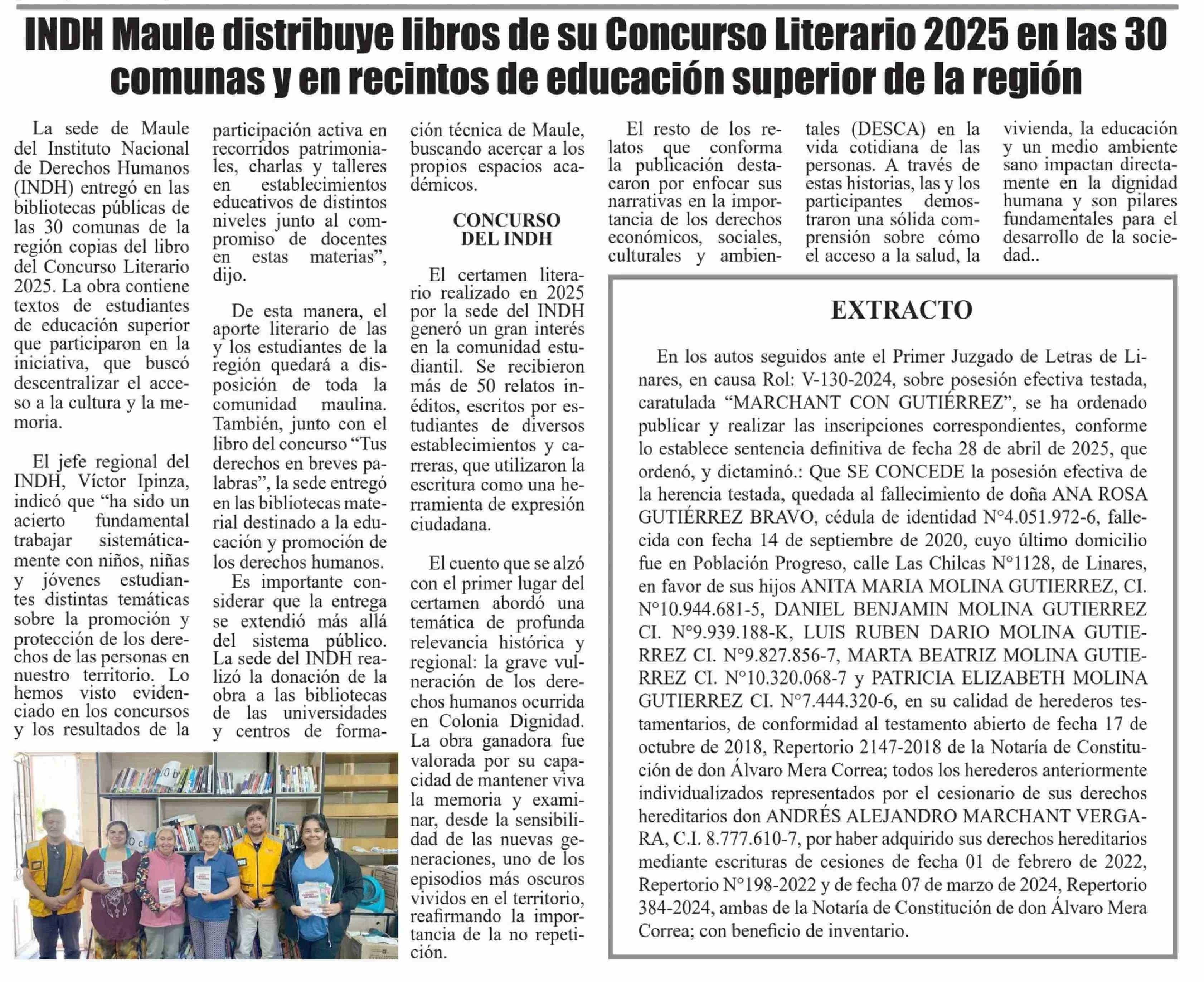| Título: | INDH Maule distribuye libros de su Concurso Literario 2025 en las 30 comunas y en recintos de educación superior de la región |