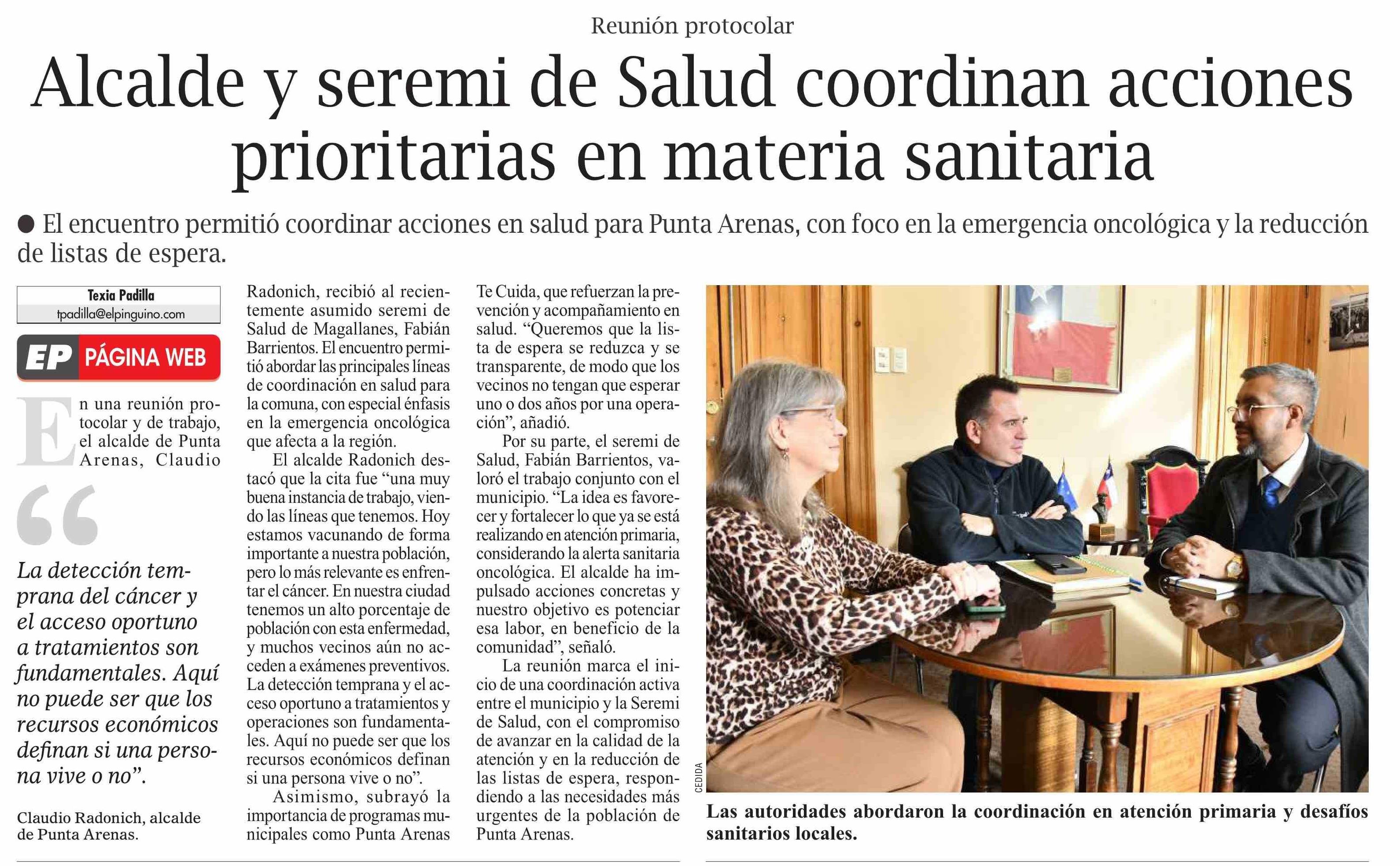 Alcalde y seremi de Salud coordinan acciones prioritarias en materia sanitaria 04-04-2026 El Pingüino |