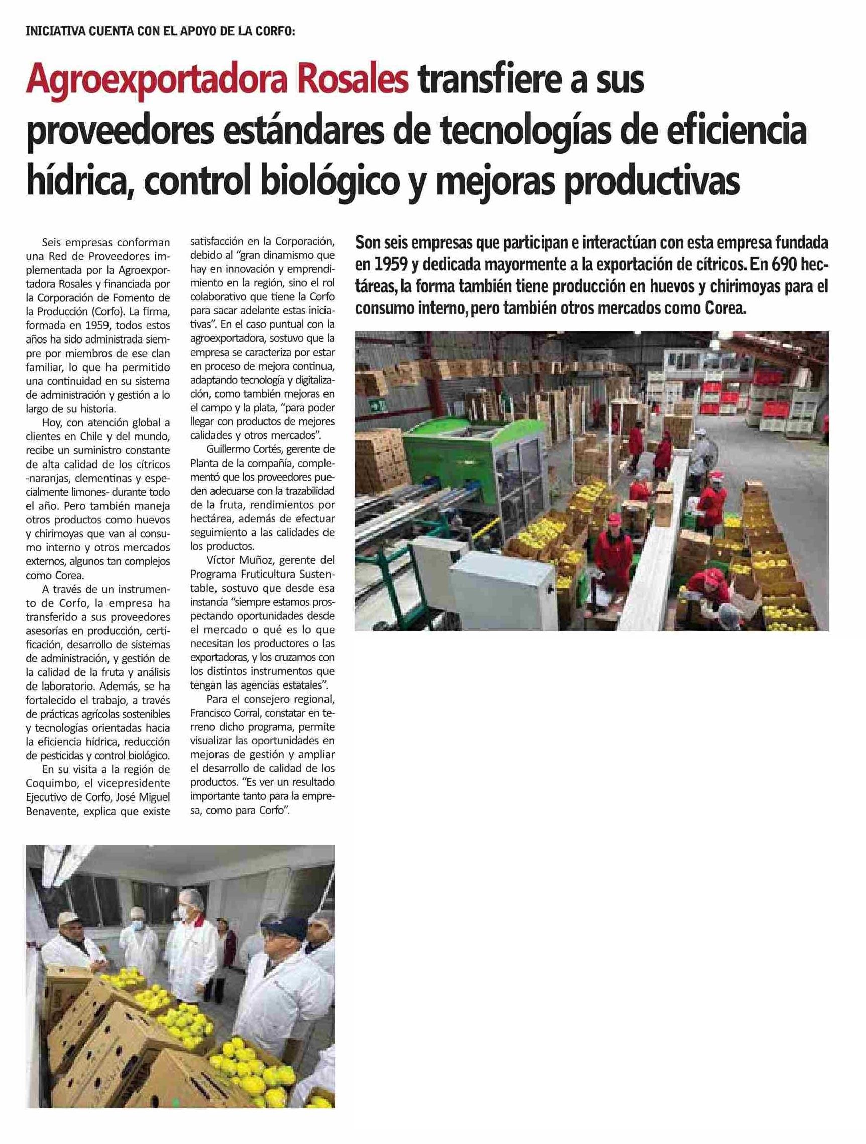 | Título: | Agroexportadora Rosales transfiere a sus proveedores estándares de tecnologías de eficiencia hídrica, control biológico y mejoras productivas |