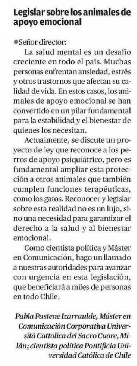 Título: Legislar sobre los animales de apoyo emocional