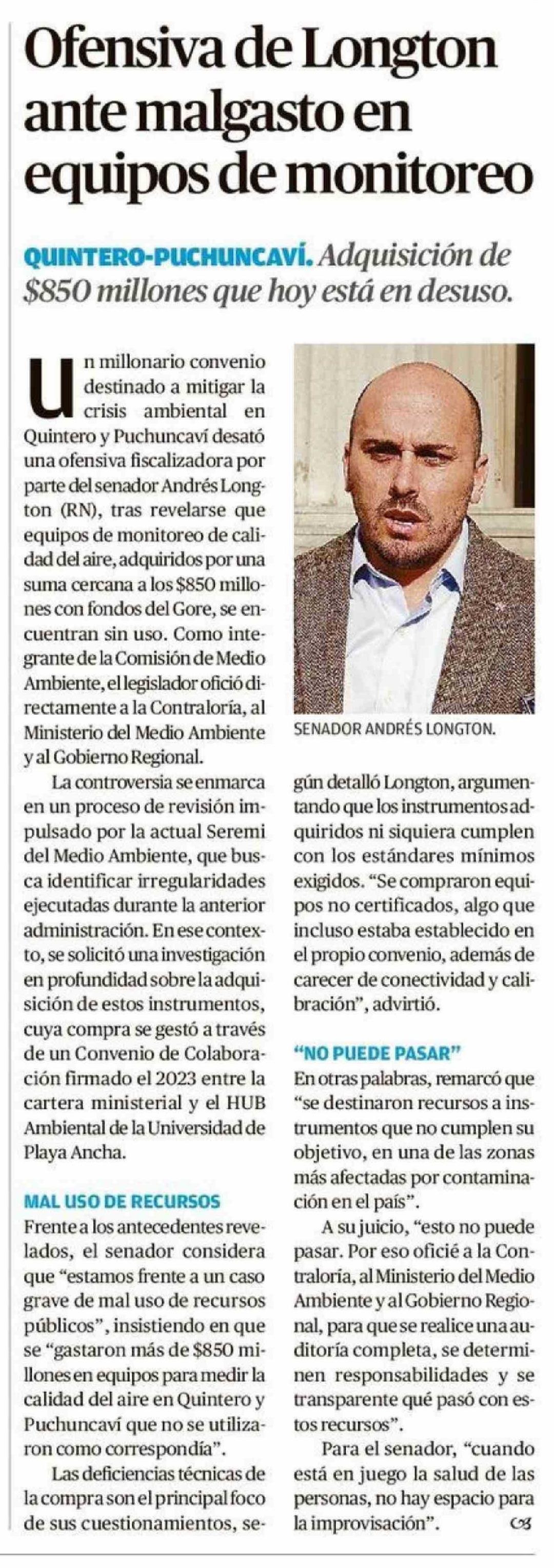 Ofensiva de Longton ante malgasto en equipos de monitoreo 15-04-2026 El Mercurio de Valparaíso |