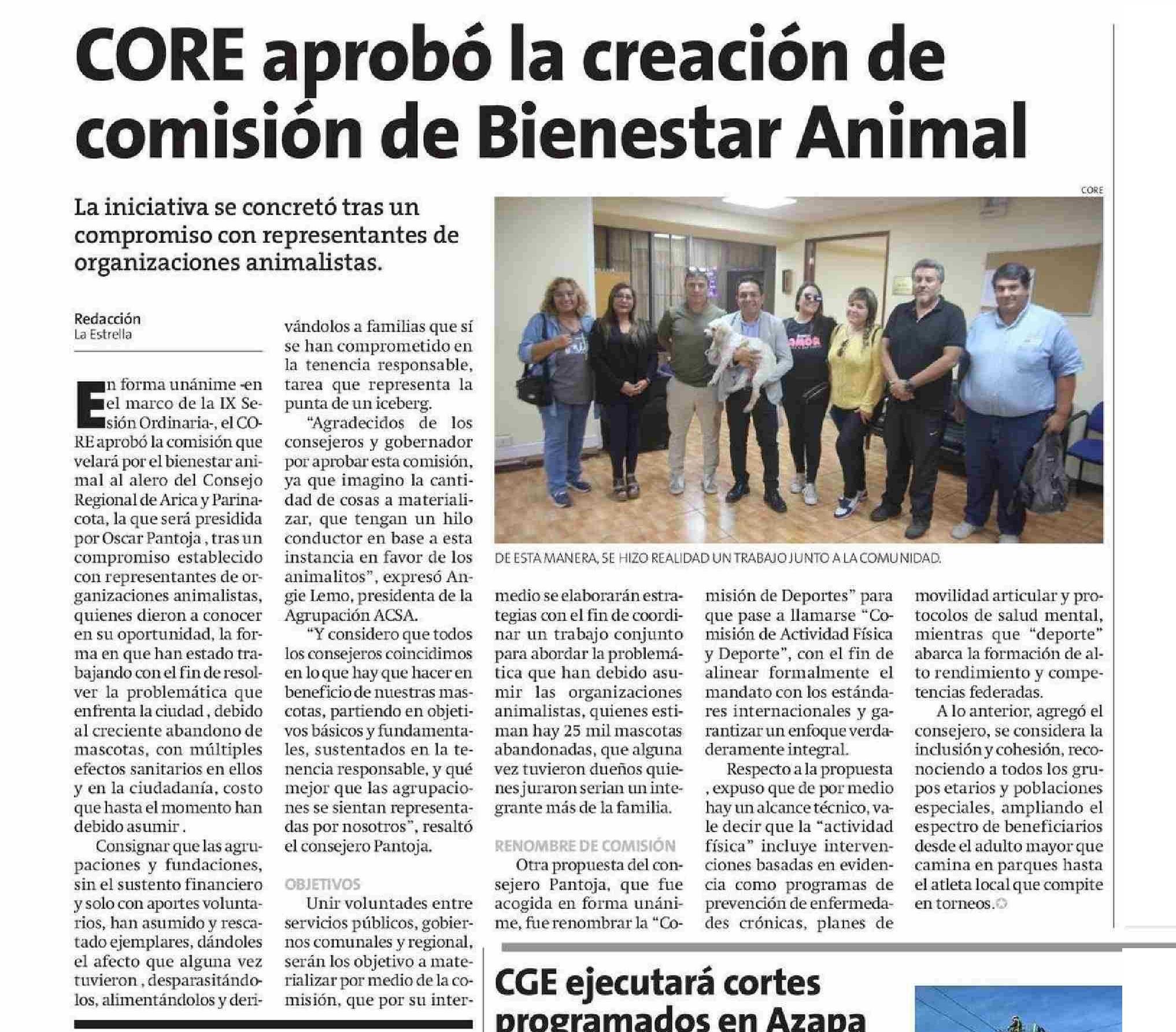 CORE aprobó la creación de comisión de Bienestar Animal 25-05-2025 La Estrella de Arica |