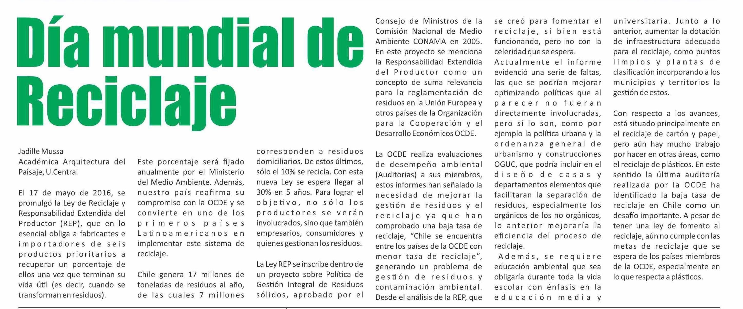 | Título: | COLUMNAS DE OPINIÓN: Día mundial de Reciclaje |