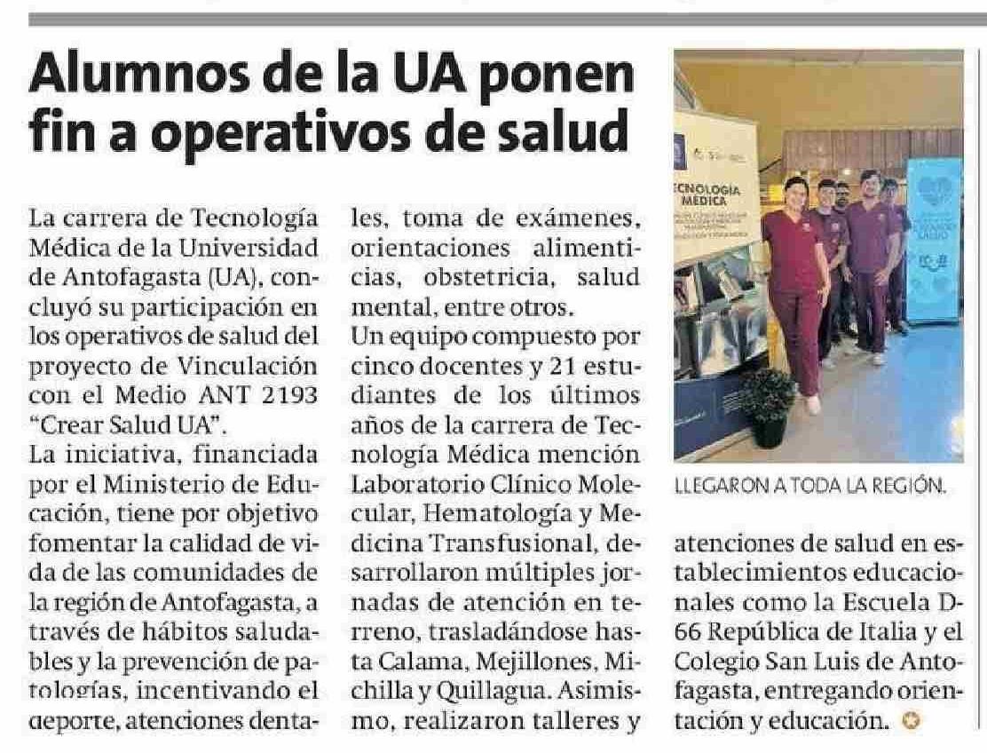 Alumnos de la UA ponen fin a operativos de salud 09-05-2025 La Estrella de Antofagasta |