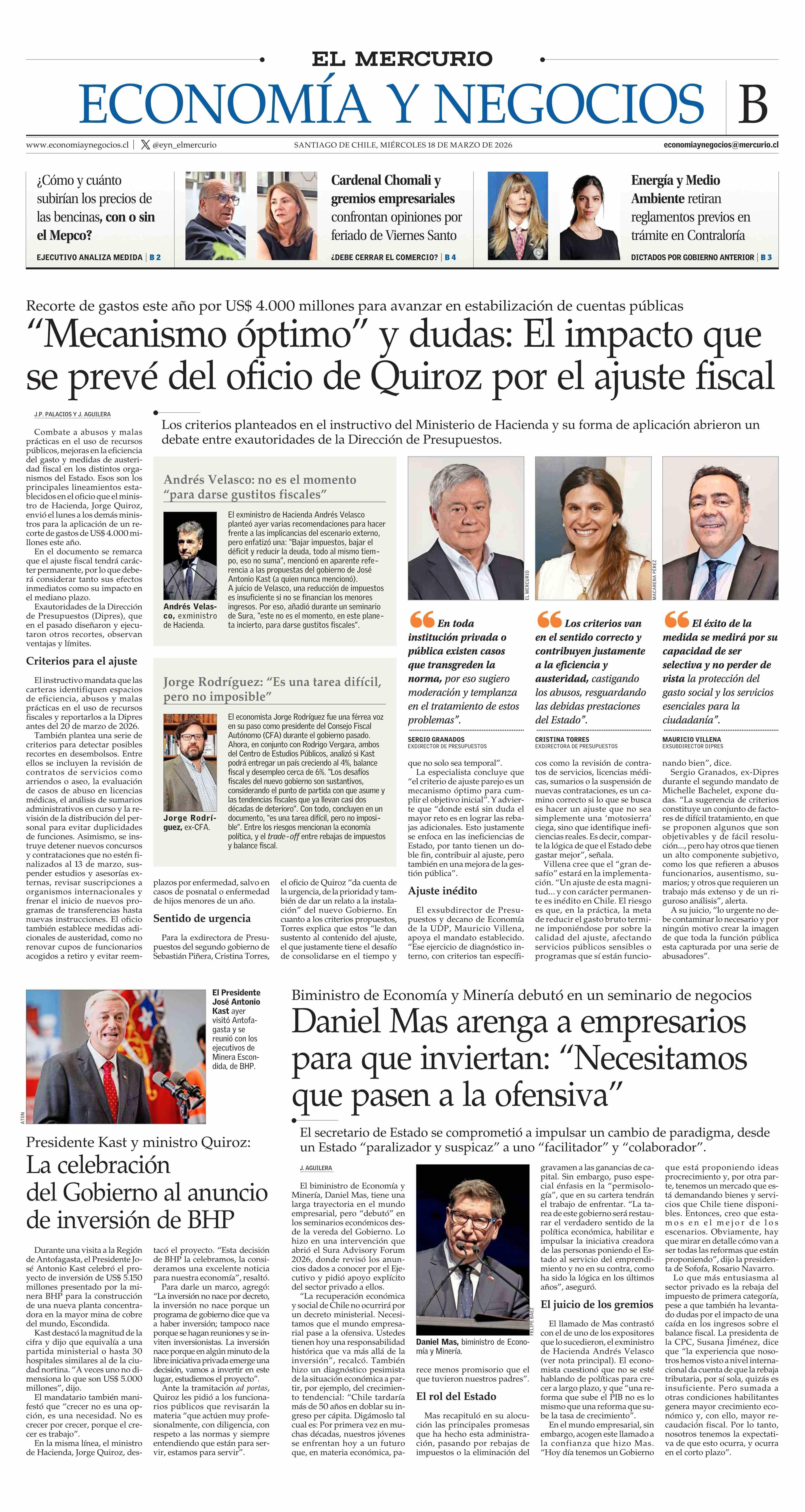 PORTADA EL MERCURIO (B) CHILE 18-03-2026 El Mercurio |