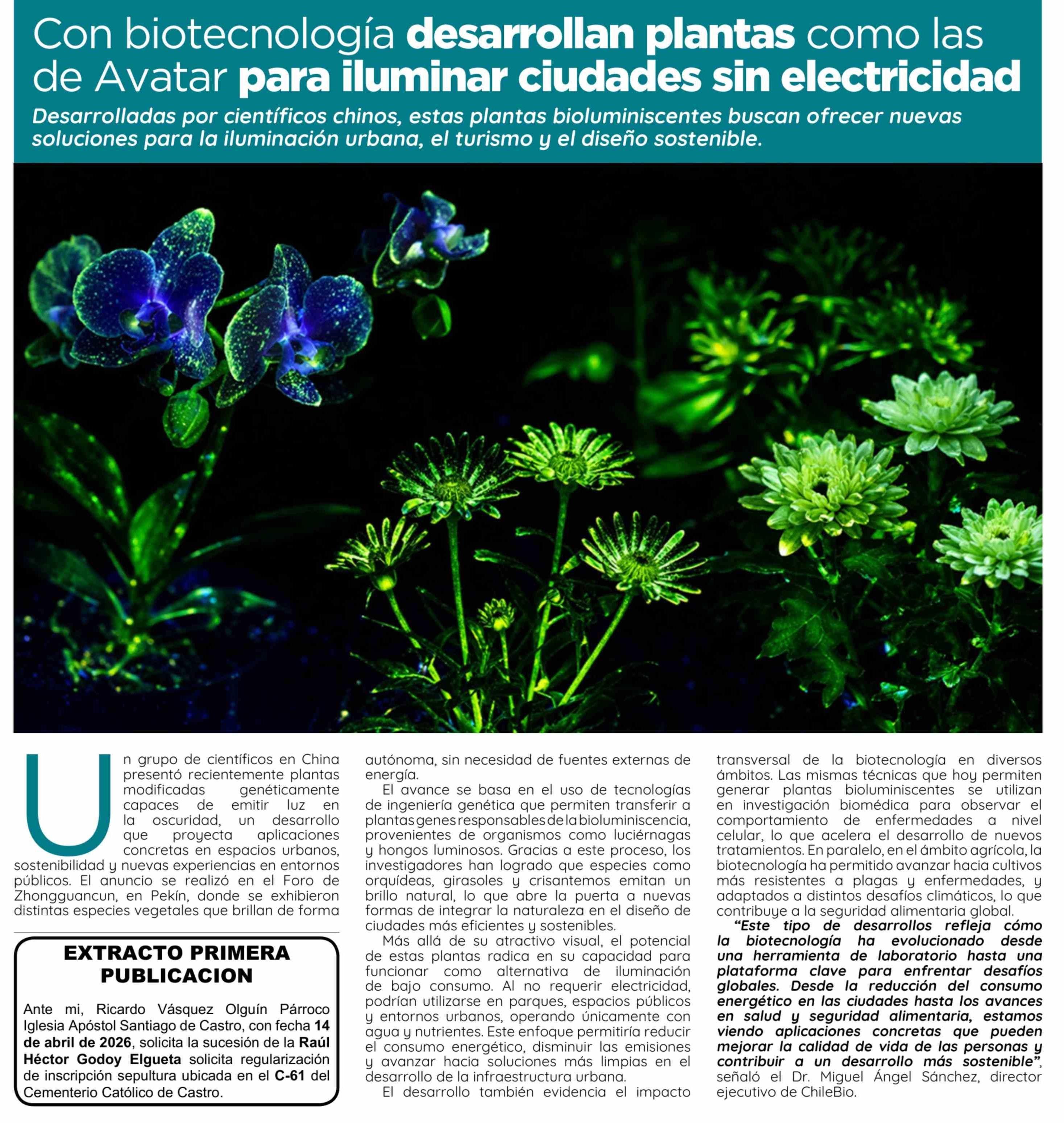 Con biotecnología desarrollan plantas como las de Avatar para iluminar ciudades sin electricidad 14-04-2026 El Insular |