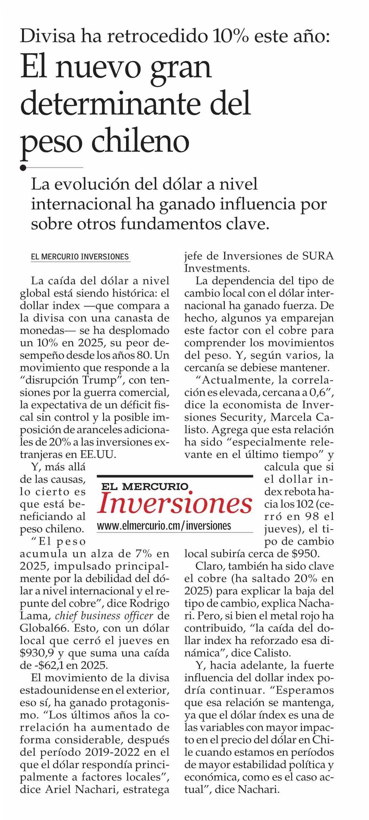 El nuevo gran determinante del peso chileno 13-06-2025 El Mercurio |
