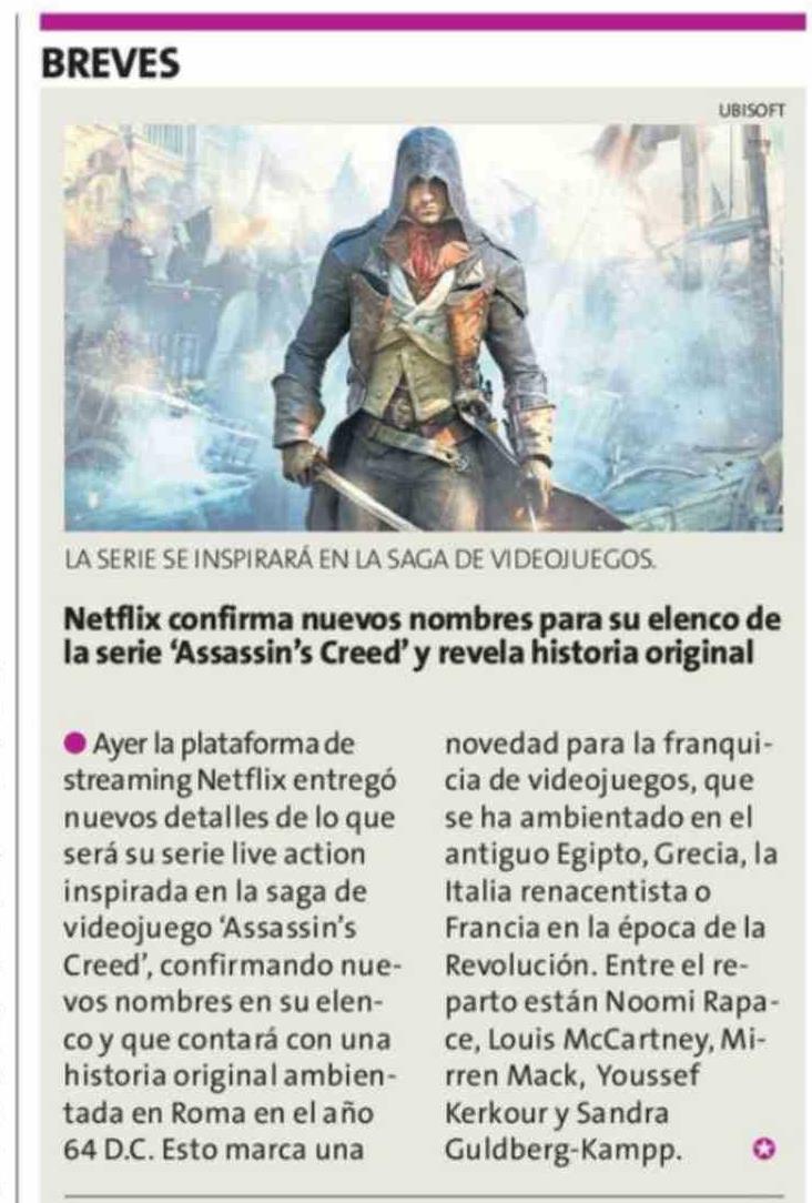 Netflix confirma nuevos nombres para su elenco de la serie 'Assassin's Creed' y revela historia original 23-03-2026 La Estrella de Iquique |