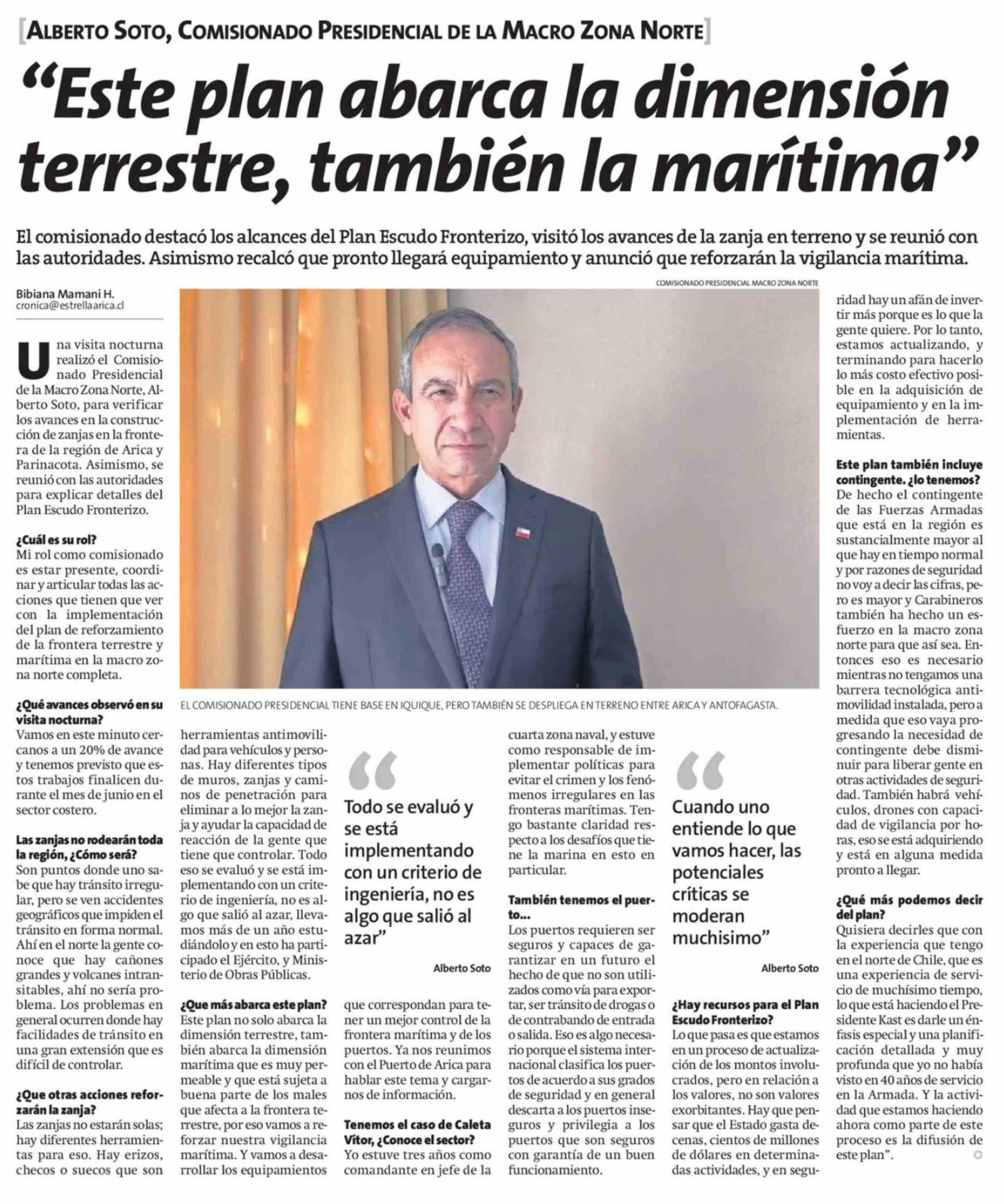 "Este plan abarca la dimensión terrestre, también la marítima" 05-04-2026 La Estrella de Arica |